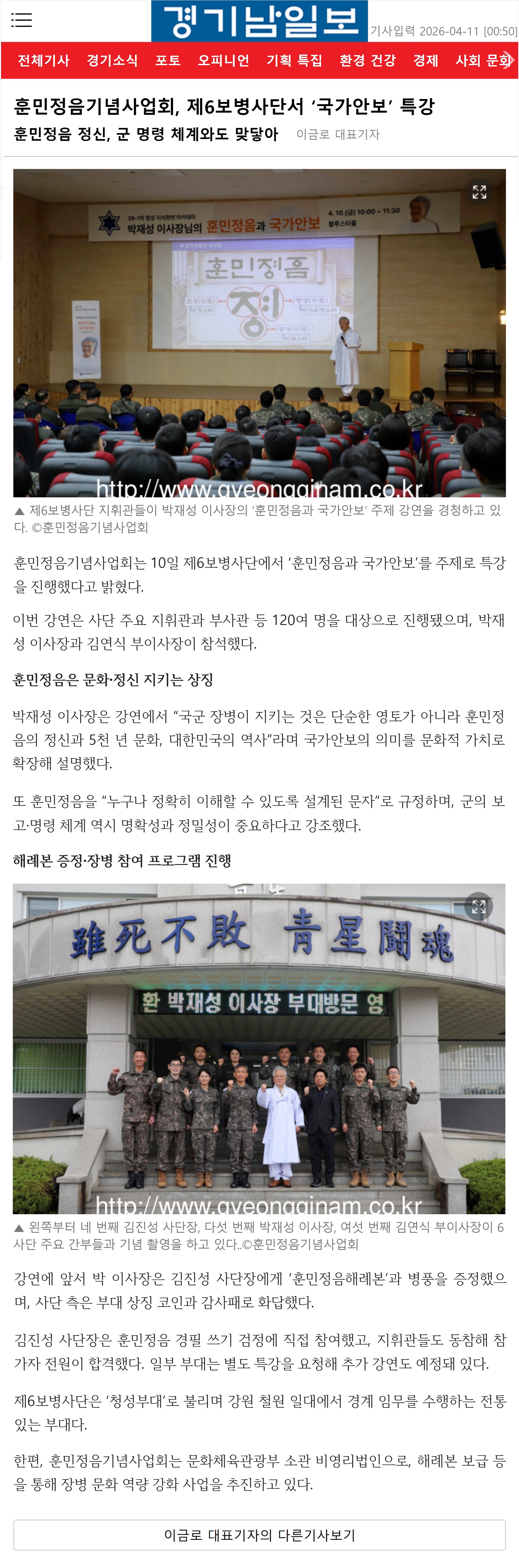 [국방일보] 훈민정음의 가치 이해하며 군인 사명 되새겨