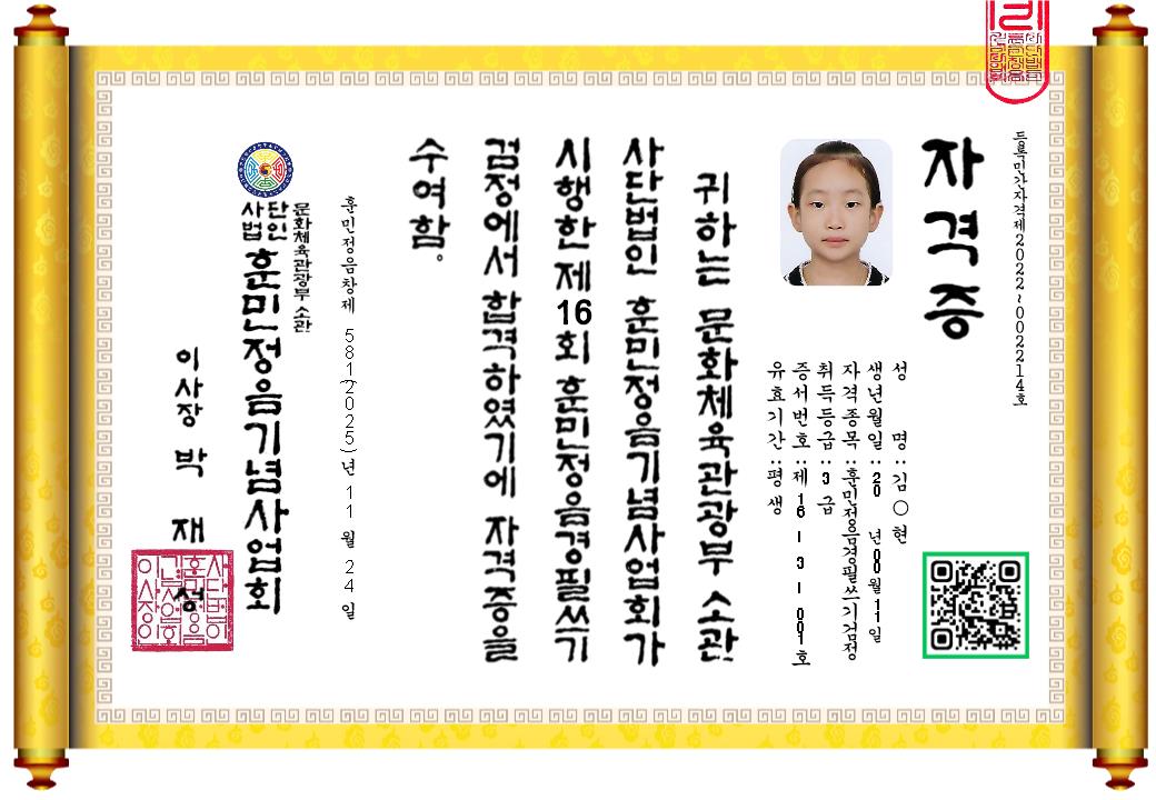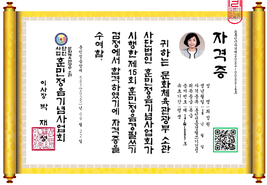 ③『훈민정음 경필쓰기 검정』등급별 응시료는 아래와 같다.