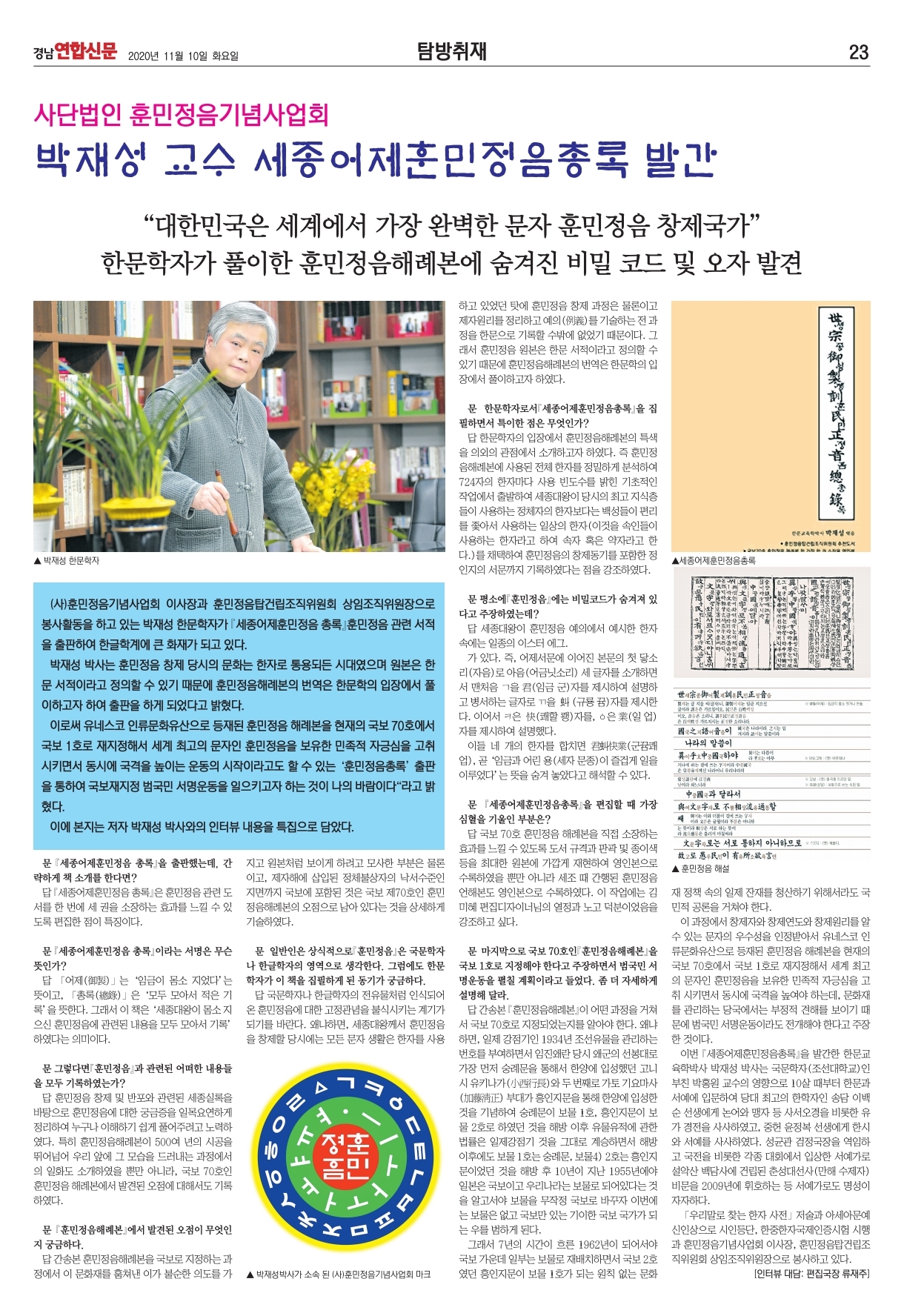 사단법인 훈민정음기념사업회 박재성 교수 탐방취재