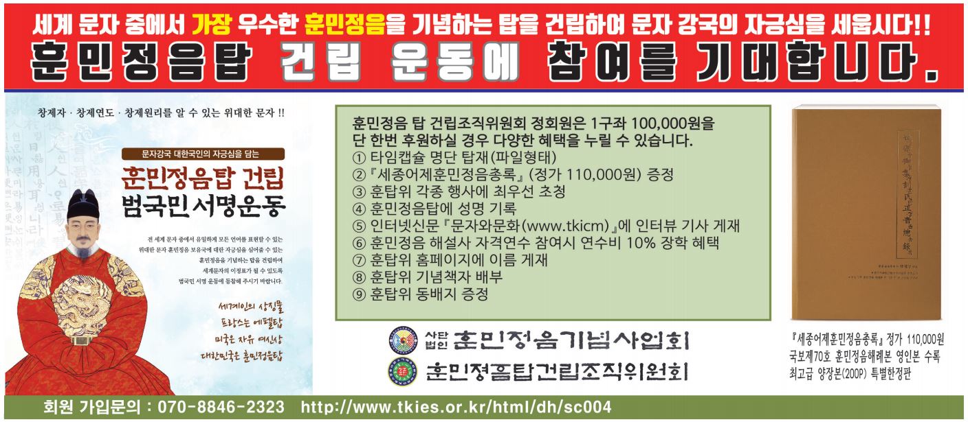 사단법인 훈민정음기념사업회 지회(지부)장 모집 공고