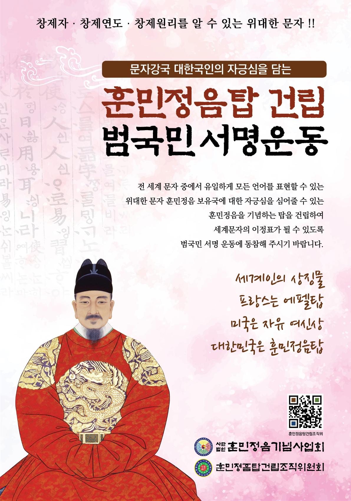 훈민정음탑건립범국민서명운동 대자보(세종어진) - 바탕 연분훙색