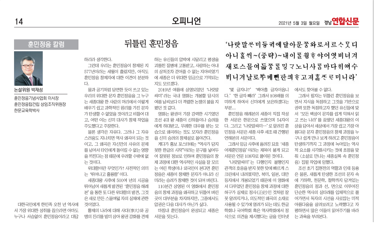 뒤틀린 훈민정음(서울경기행정신문)
