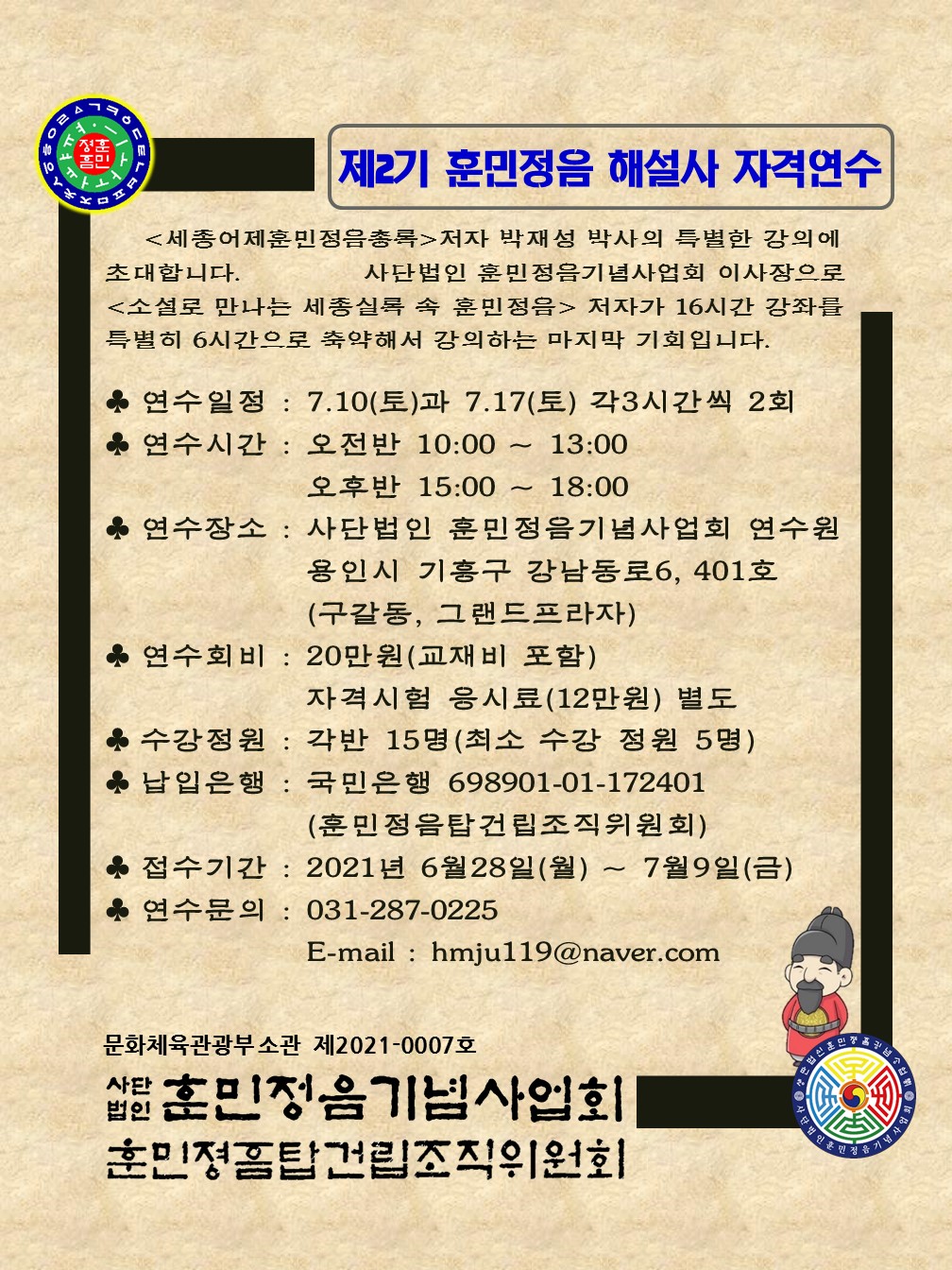 제2기 훈민정음해설사 자격과정 연수 개강안내