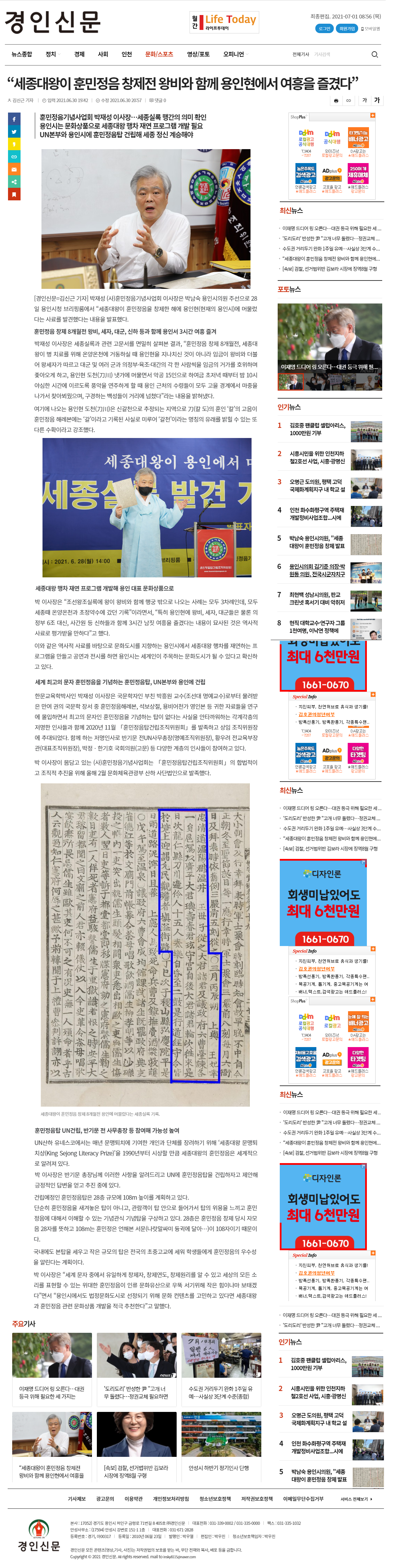 [경인신문]세종대왕이 훈민정음 창제전 왕비와 함께 용인현에서...