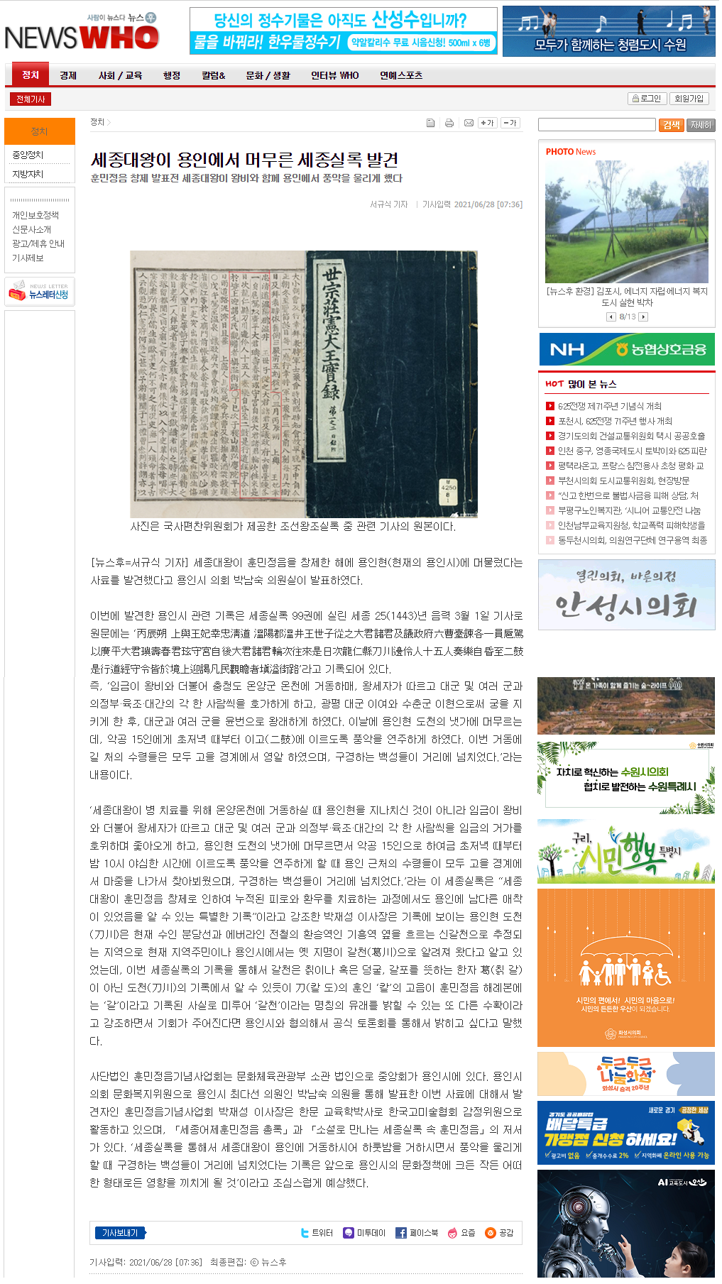 [내외일보]세종대왕이 용인에서 머무른 세종실록 발견