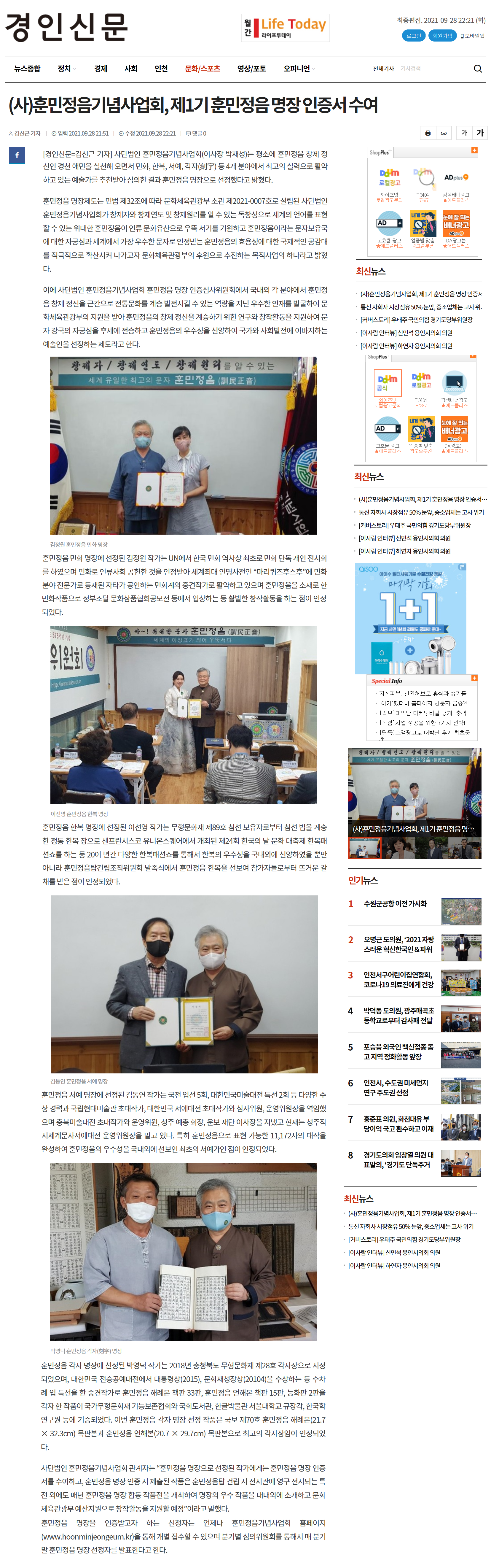 [경인신문] 제1기 훈민정음 명장 인증서 수여