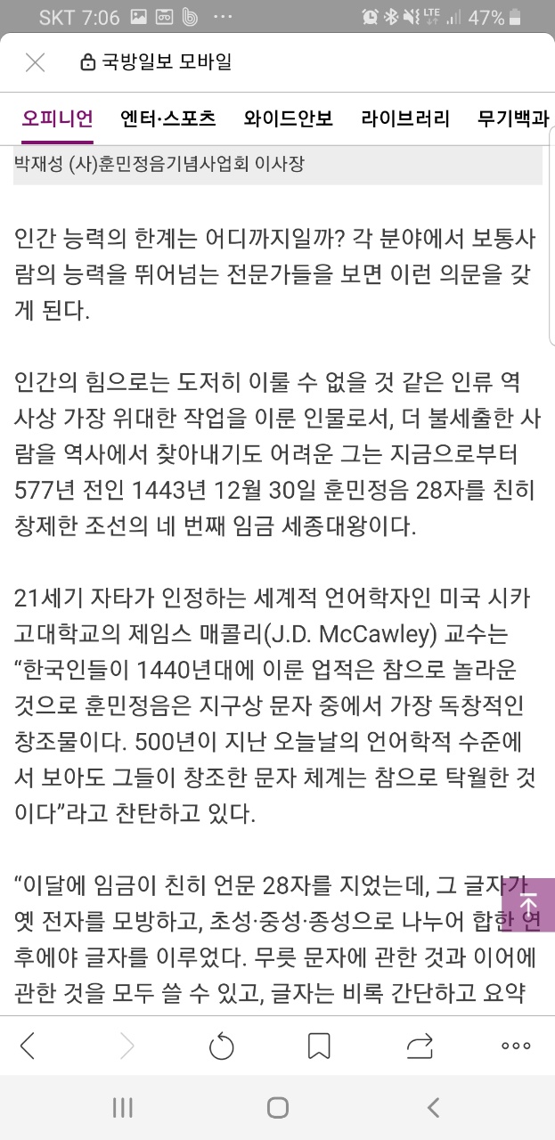 [용인뉴스]한글날 되새기는 한글 24자와 훈민정음 28자의 의미