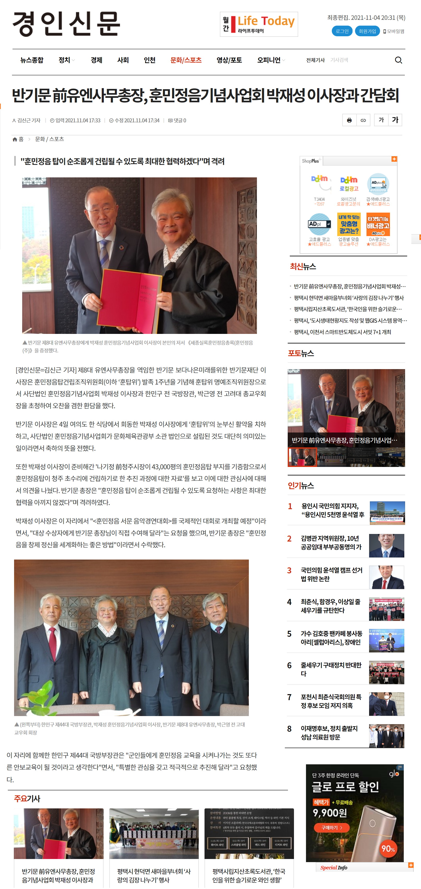 [경인신문] 반기문 전 유엔사무총장 훈민정음기념사업회 박재성 이사장과 간담회