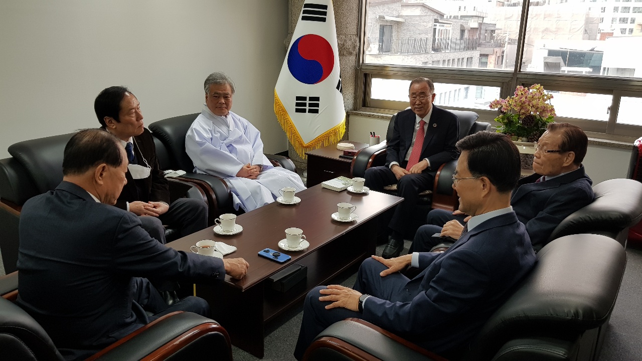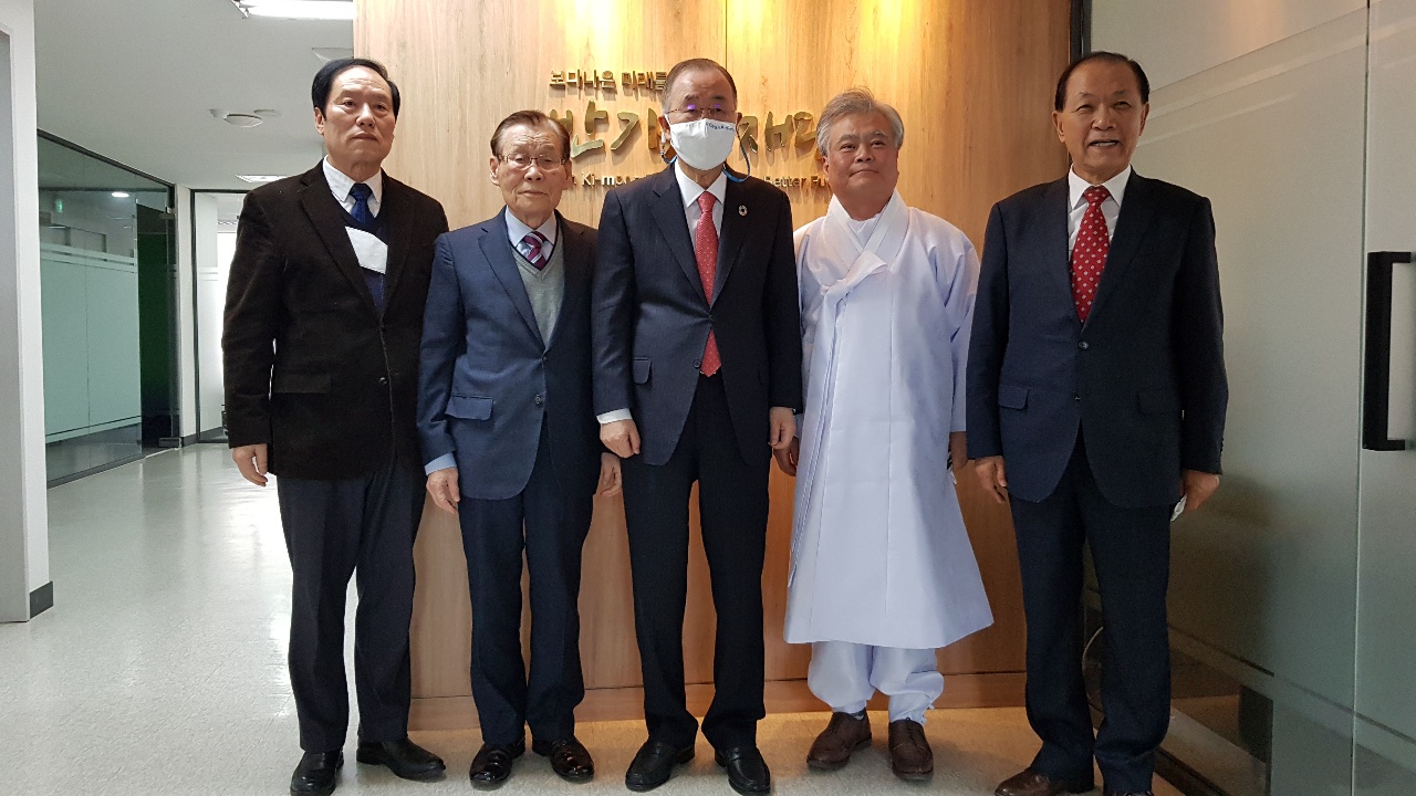 2021년 12월 5일 오후 2시 훈민정음탑건립조직위원회 명예조직위원장 반기문 전 유엔사무총장의 초대를 받아서 서울특별시 종로구 경희궁길 33 내자빌딩 5층에 위치한 보다나은미래를 위한 반기문 재단 사무실에서 훈민정음탑 건립 및 훈민정음기념사업회의 목적사업에 대해서 환담하였다. 이 자리에는 대표조직위원장이신 황우여 전 사회부총리 겸 교육부장관, 공동조직위원장이신 나기정 전 청주시장, 공동운영위원장이신 김동연 세계직지서예협회 이사장이 함께 하였다.
