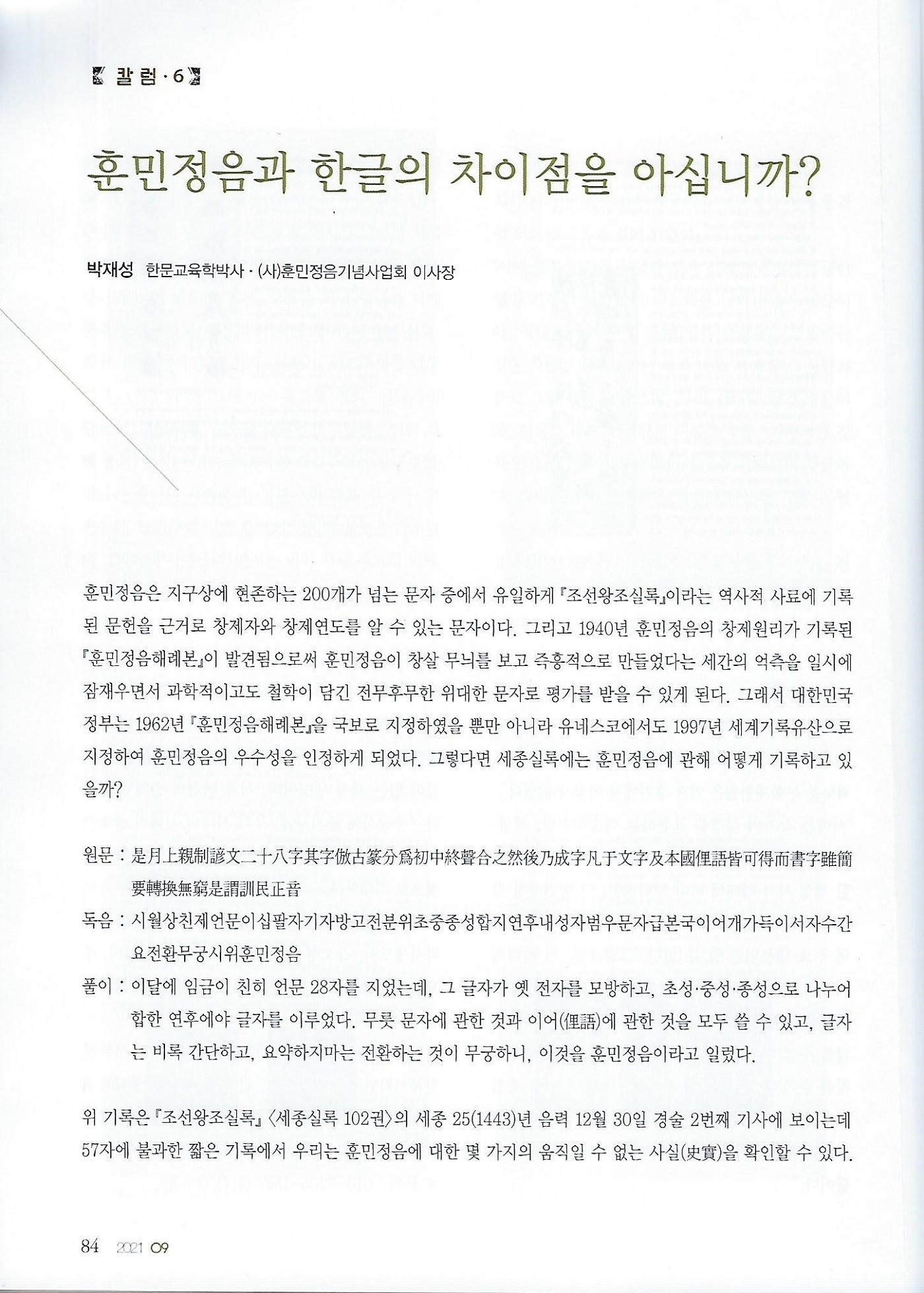 [칼럼6] 훈민정음과 한글의 차이점을 아십니까?
