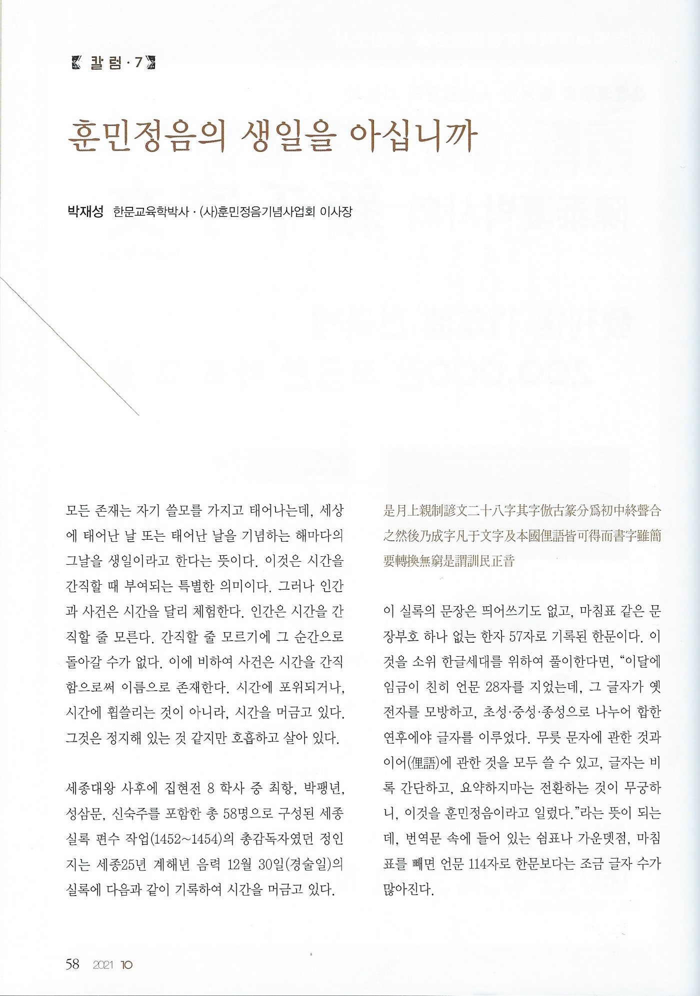 [칼럼7] 훈민정음의 생일을 아십니까?
