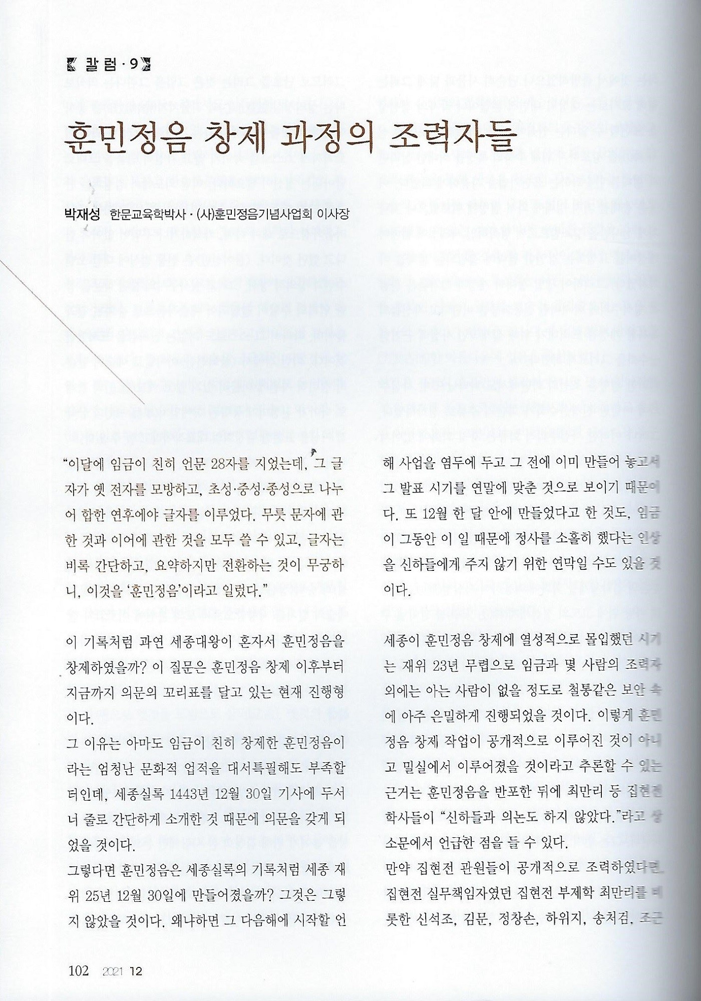 [칼럼9] 훈민정음 창제 과정의 조력자들