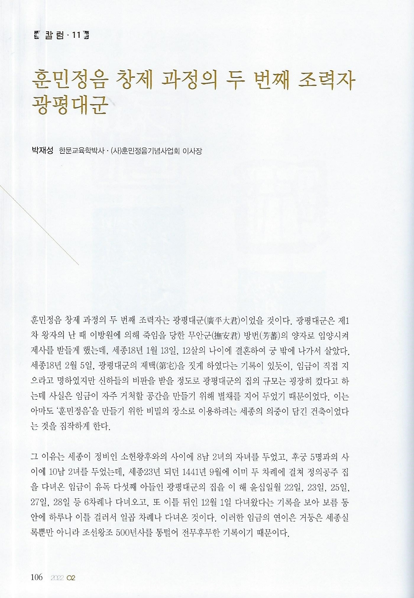 [칼럼11] 훈민정음 창제 과정의 두 번째 조력자 광평대군