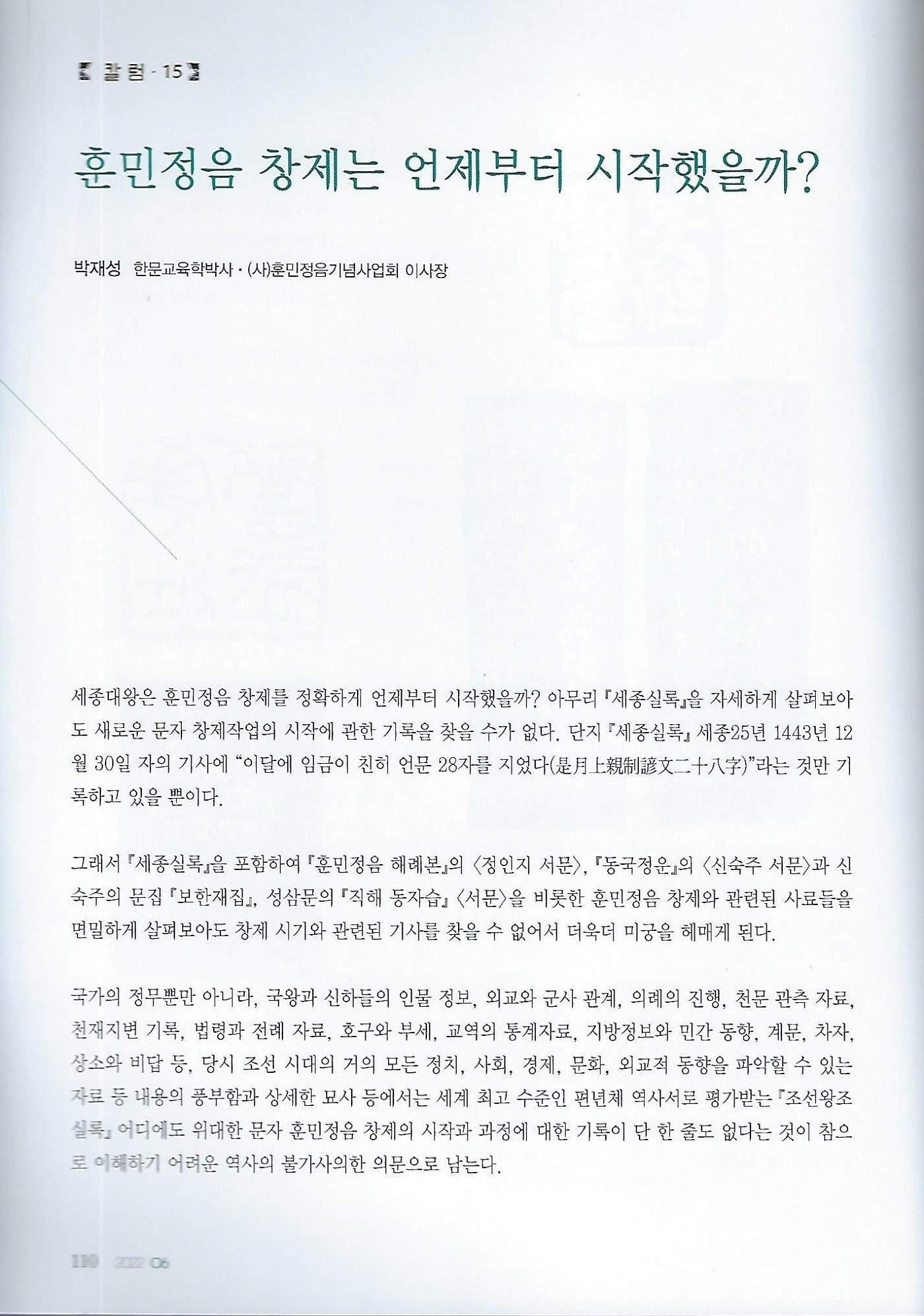 [칼럼15] 훈민정음 창제는 언제부터 시작했을까?