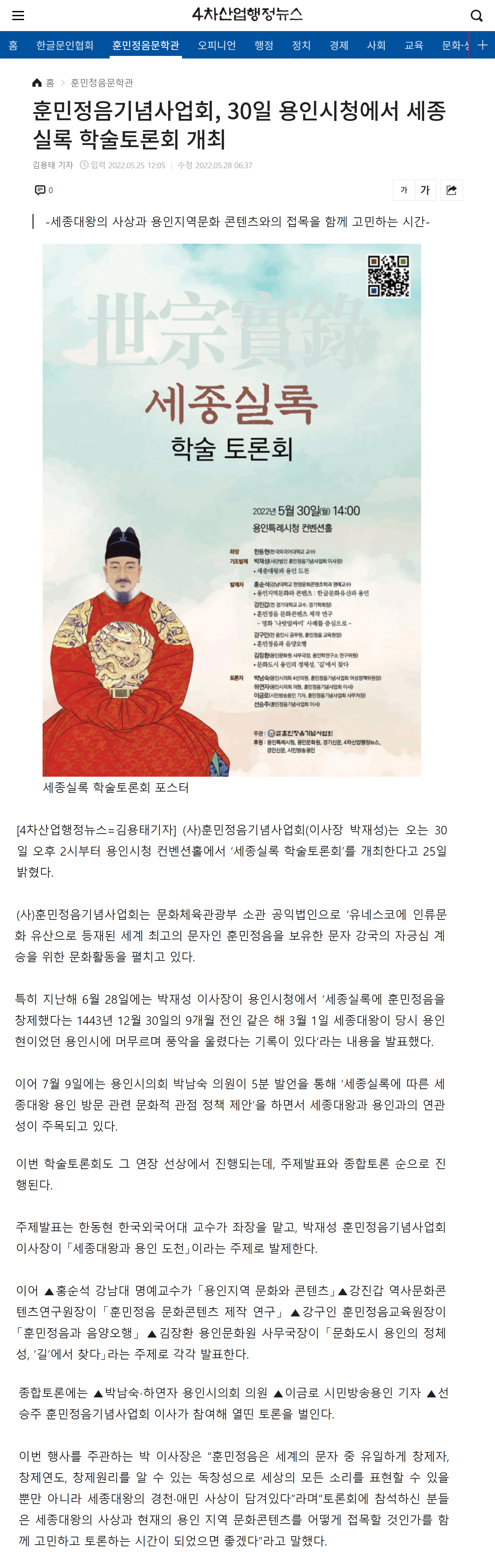 [4차산업행정뉴스] 세종실록 학술토론회 개최