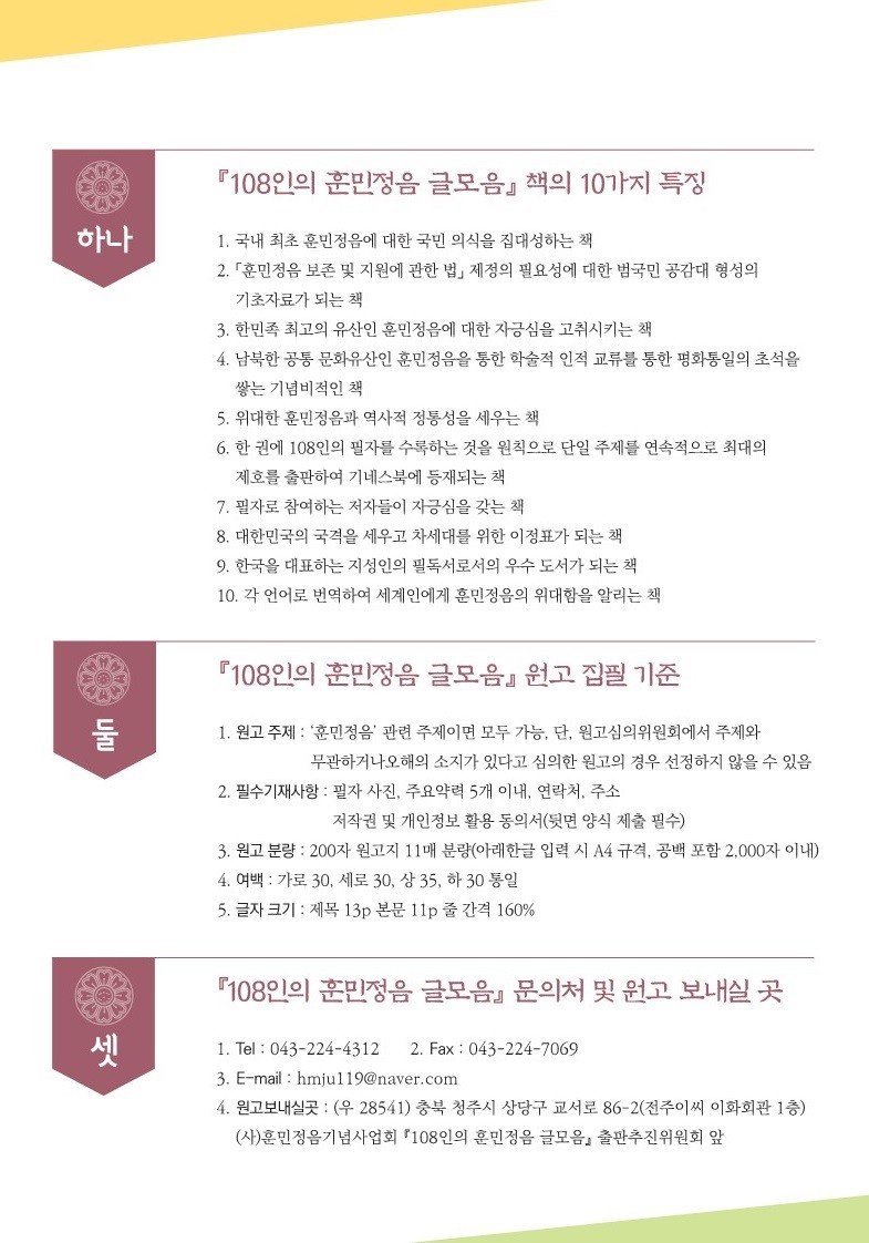 <108인의 훈민정음 글모음> 신문 5단 광고