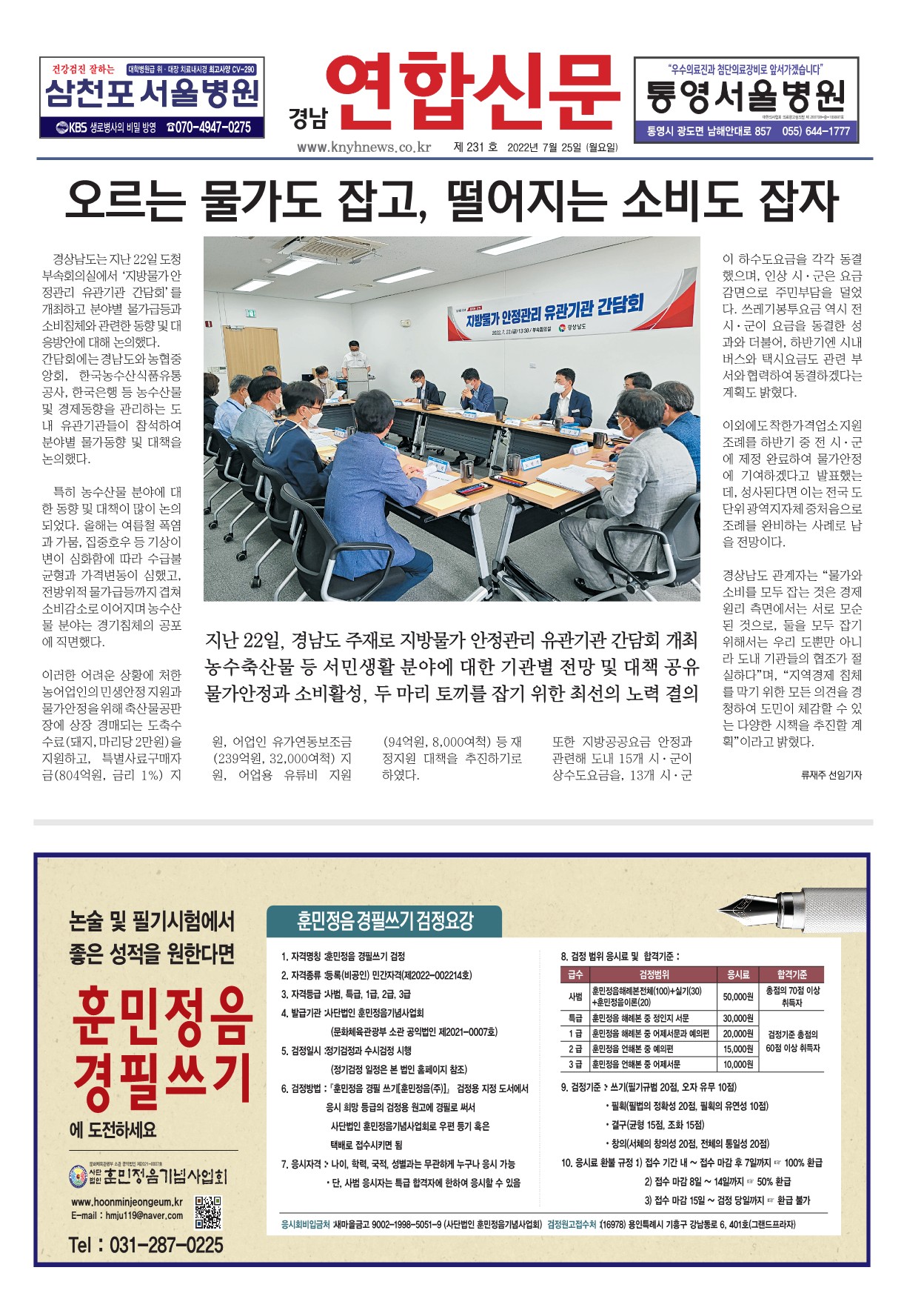 <훈민정음 경필쓰기> 경남연합신문 1면 하단 5단 광고