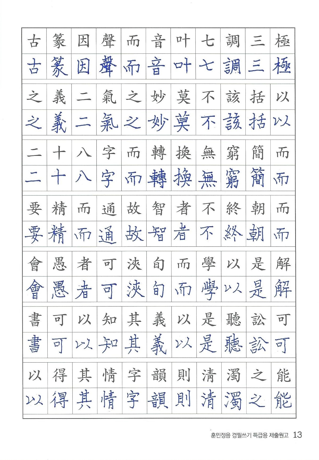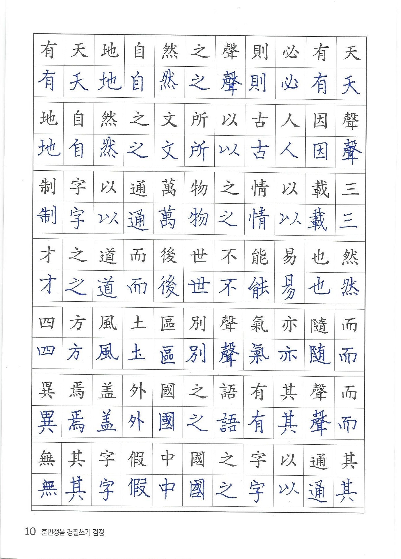 훈민정음 경필쓰기 검정