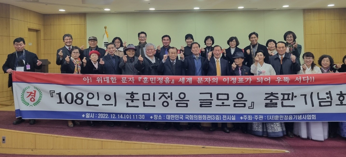 2022년 12월 14일(수) 오후2시부터 국회의원 회관 제2소회의실에서 훈민정음 법 제정 촉구를 위한 학술토론회가 국회 문화체육관광위원회 위원장 홍익표 국회의원과 간사 이용호 국회의원 및 이장섭 더불어민주당 국회의원이 공동 주최하고 사단법인 훈민정음기념사업회가 주관한 행사로 개최되었다. 3백여 명이 참석한 가운데 개최된 이번 행사는 본행사와 학술토론회에 이어 사단법인 훈민정음기념사업회가 발행한 <108인의 훈민정음 글모음> 출판기념회를 진행하였다.