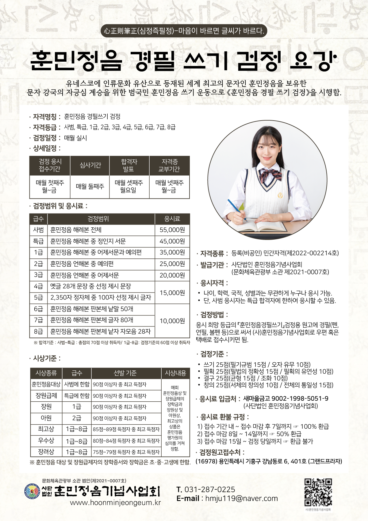 2023년도 훈민정음 경필쓰기 검정 요강 발표