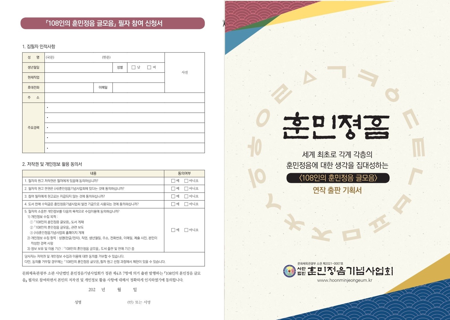 <108인의 훈민정음 글모음>제2집 원고 모집 공고