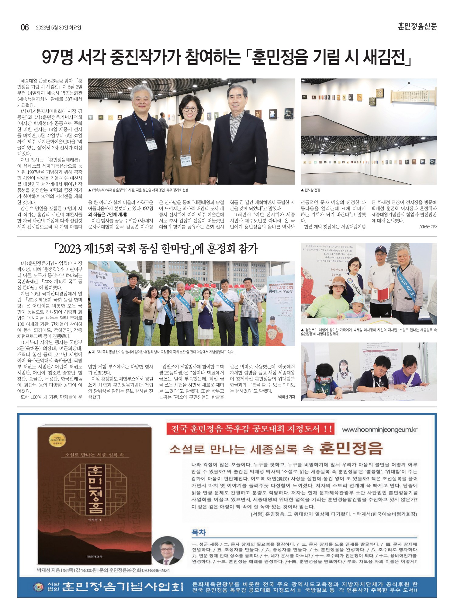 97인 훈민정음 기림시 새김전 세계문자서예협회와 공동주최