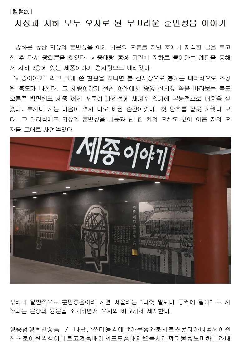 [칼럼29] 지상과 지하 모두 오자로 된 부끄러운 훈민정음 이야기