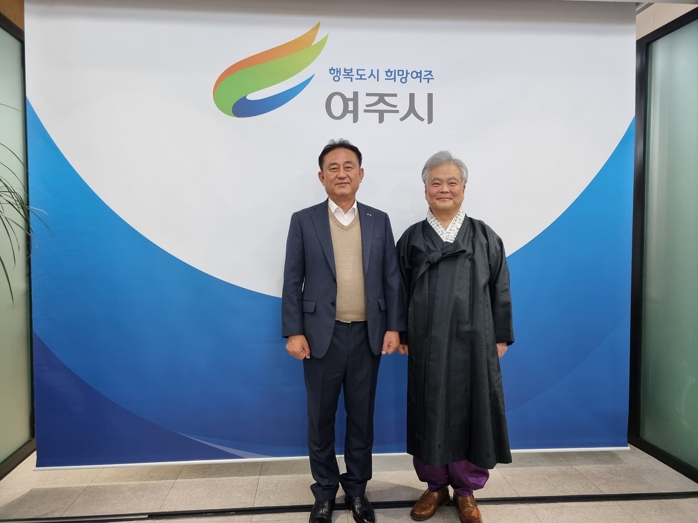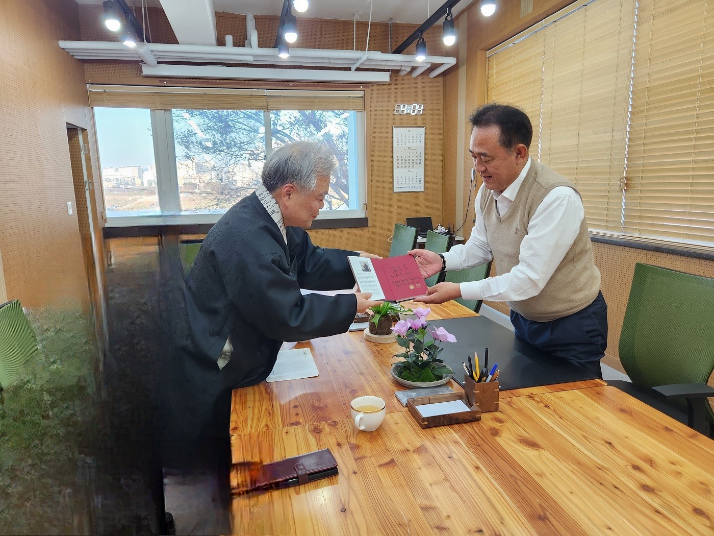 훈민정음기념사업회 박재성 이사장은 2023년 11월 8일 오후 4시 여주시 이충우 시장을 방문하여 훈민정음 탑 건립 등에 관하여 환담하였다. 이 자리에서 박이사장은 이충우 시장에게 저서 <소설로 만나는 세종실록 속 훈민정음>을 선물하였다. 최형석 대외협력처장이 동행하였다.