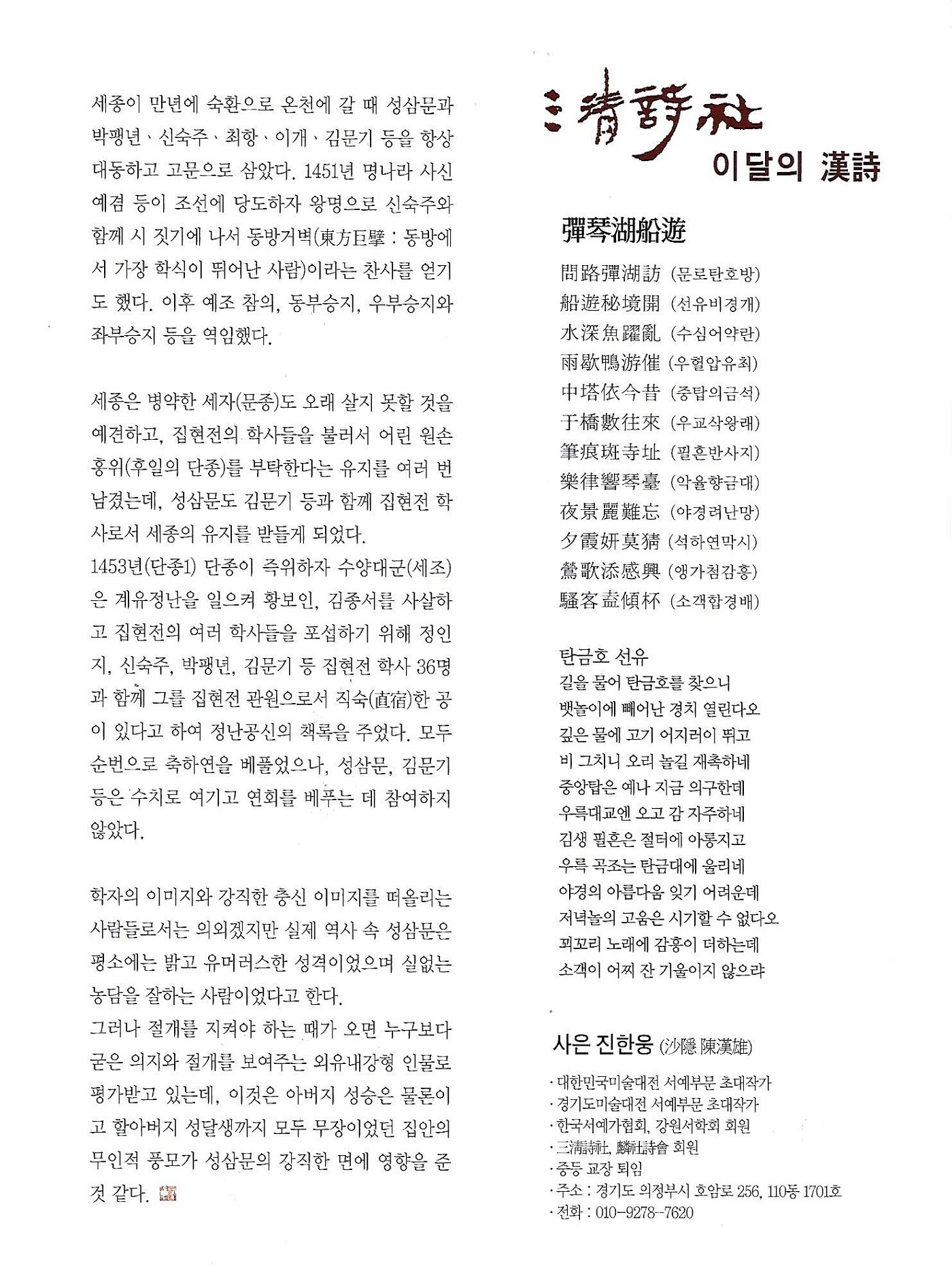 [칼럼 40] 훈민정음 창제 과정의 네 번째 조력자 성삼문