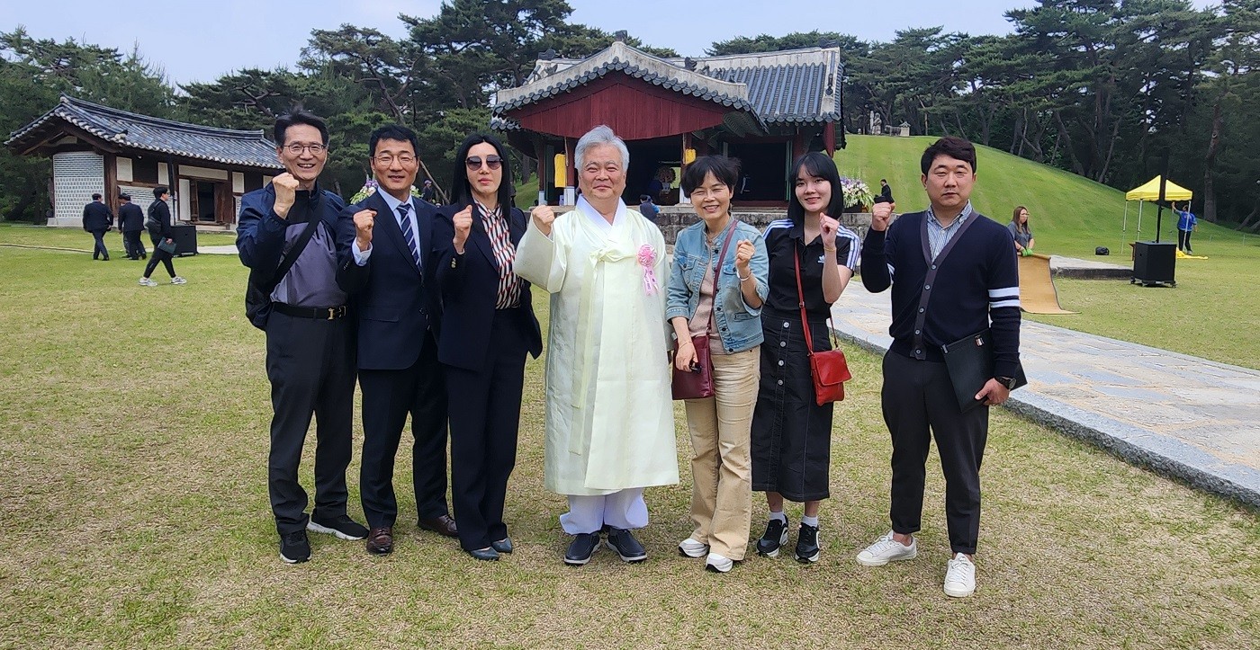 정부가 주관한 세종대왕 탄신 627 돌 숭모 기념 행사에 '훈민정음기념사업회 이사장'의 직책으로 공식적으로 초청되어 훈정회 임원들과 참석하고 여주시 이충우 시장과 인사를 나눈 후 기념 촬영하는 박재성 이사장과 이금로 이사, 김보영 이사, 김현욱 감사, 박희영 변호사, 김초윤 정회원.