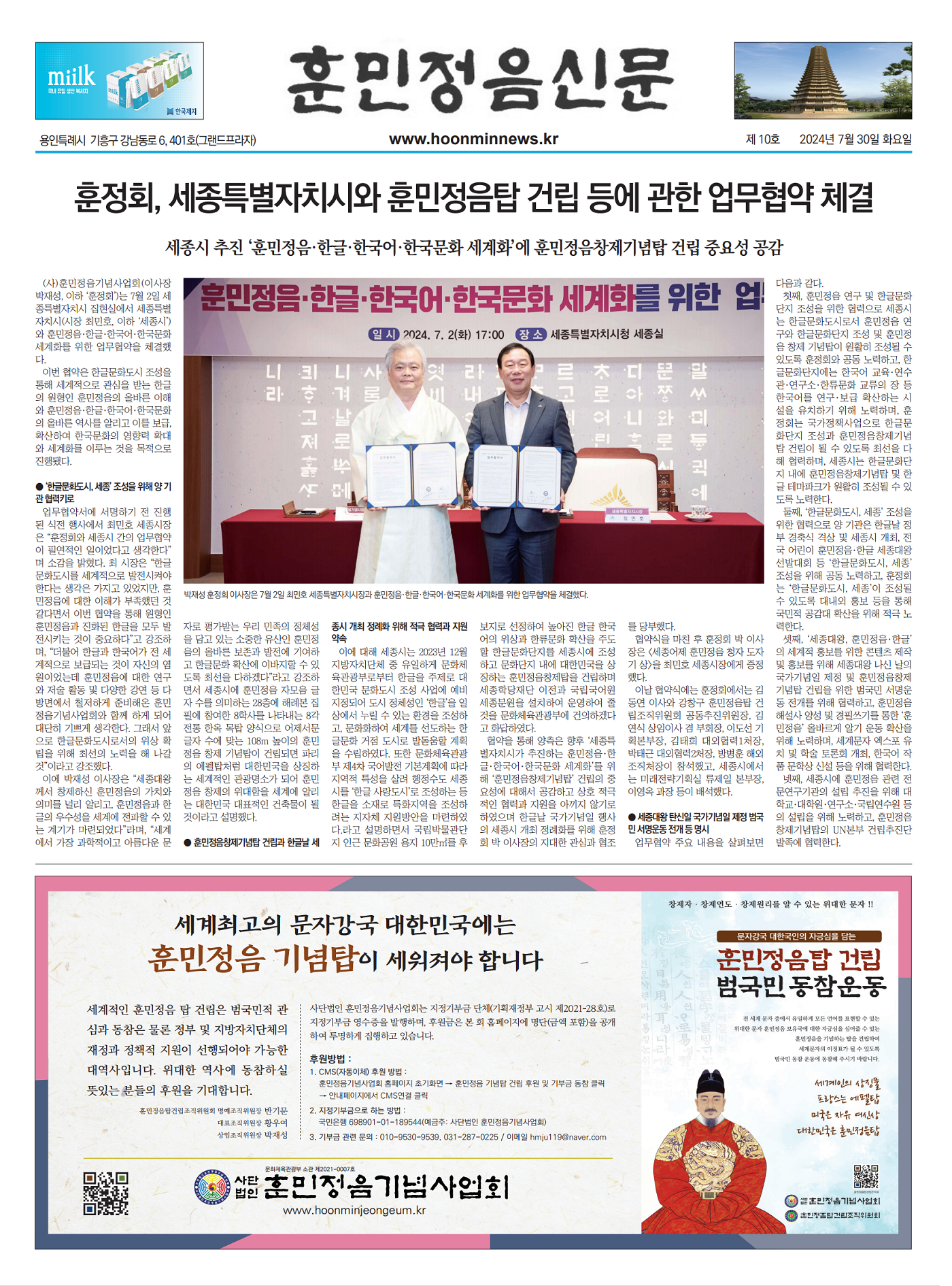 최민호 세종특별자치시장 훈민정음기념사업회 방문