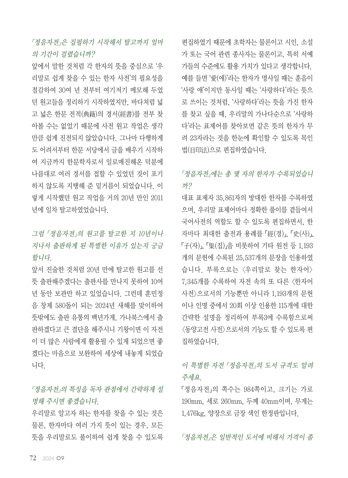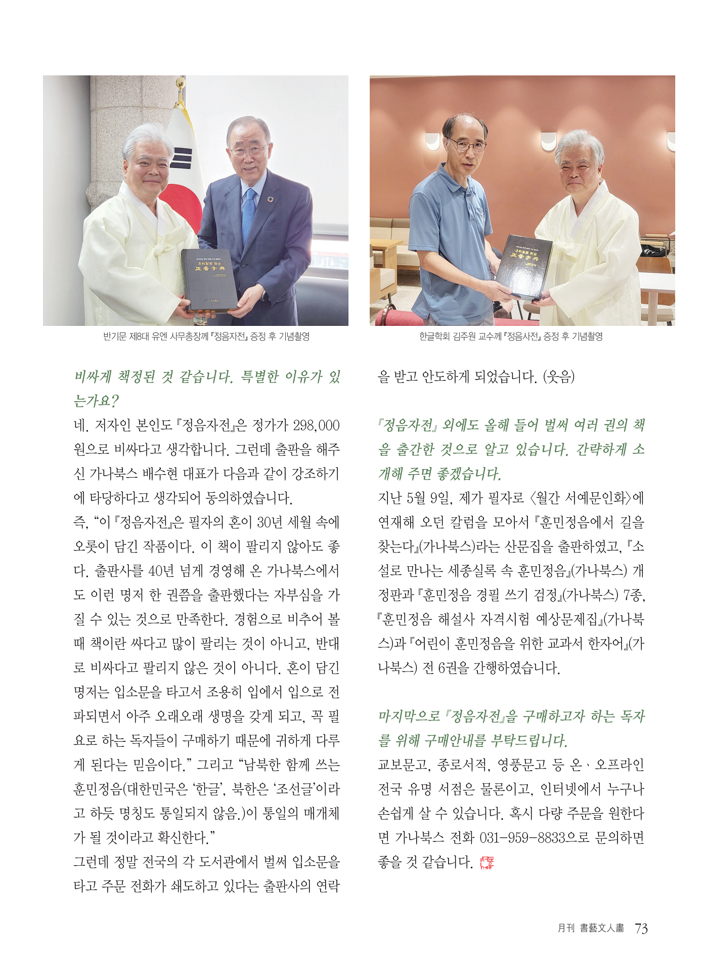 <한글새소식>9월호(한글학회 발행)에 [우리말로 찾는 정음자전] 소개