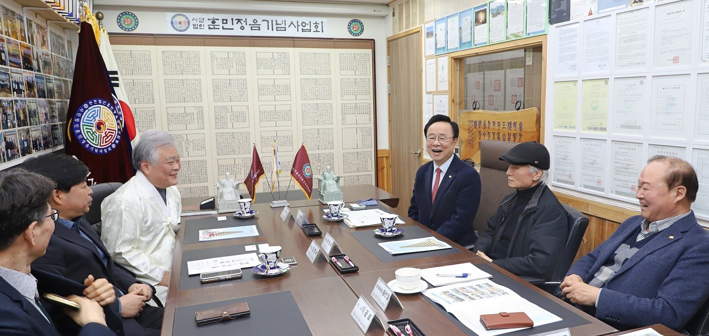 3월 7일(금) 오전 11시 이주영 전 해양수산부장관이 사단법인 훈민정음기념사업회(이하 '훈정회') 박재성 이사장을 예방하고 약 4시간 동안 환담을 나누었다. 훈정회 김연식 부이사장, 조병수 부이사장, 이금로 이사와 송선영 대외협력처장, 왕성상 전 매일경제 대기자가 참석하였다. 이 자리에서 박이사장은 이주영 장관이 총재로 이끌고 있는 세계도덕재무장운동에 대해 각별한 관심을 갖고 질문하였고, 이 전 장관은 이에 대해서 자세히 대답하면서 '훈민정음기념사업회'의 탁월한 기획력과 박이사장의 지도력을 높이 평가한다고 화답하였다. 앞으로 훈민정음 창제 기념탑 건립의 성공적 추진을 위해 물심양면으로 협조할 방법을 강구하겠다고 약속하였다. 박이사장은 이 전 장관에게 자신의 저서 <훈민정음에서 길을 찾는다>를 증정하였다.<김신근 훈민정음신문 편집국장>