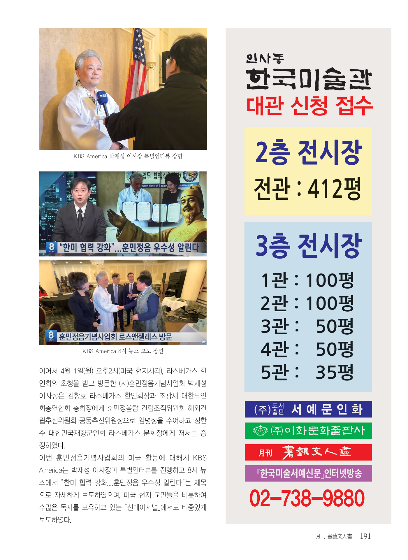 [월간서예문인화] 훈민정음기념사업회, 미연방한인총연합회 초청 방문 상세보도