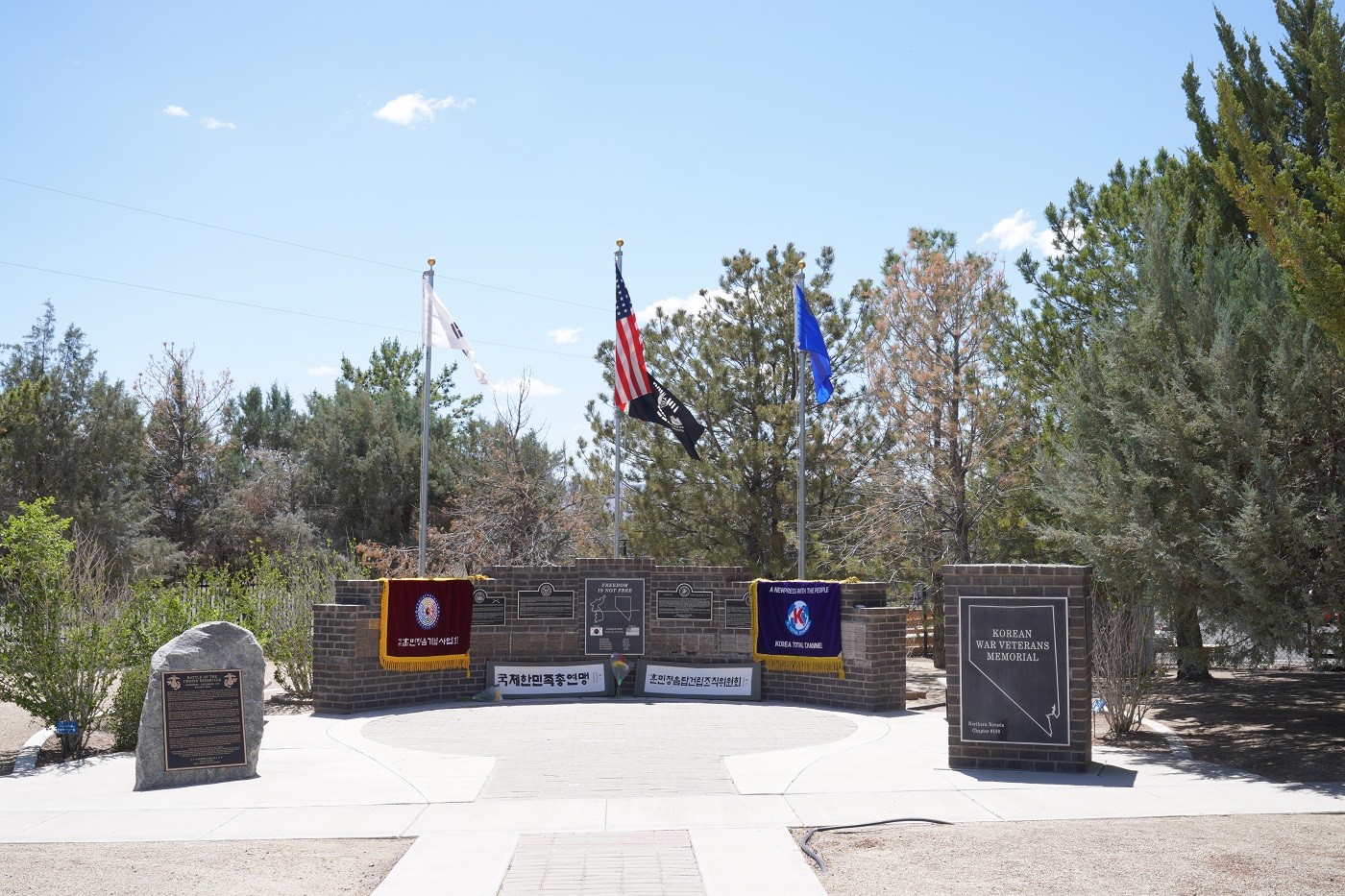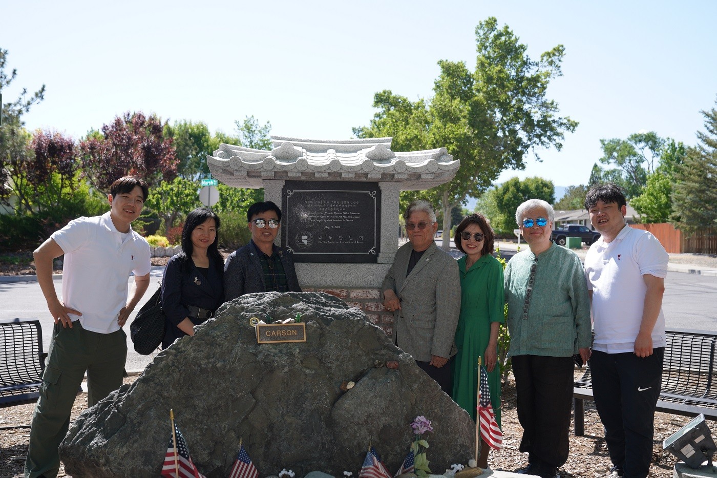 2025년 5월 30일 미국 네바다주 리노시에 위치한 국립전쟁기념관을 방문한 훈민정음기념사업회 박재성 이사장과 김수철 국제한민족총연맹 총재, 박관수 KTC대표이사, 윤정미 이사, 문선영 실장은 훈민정음기념사업회 기를 걸고 한국전쟁에 참전해 고귀한 목숨을 아낌없이 바친 미군 희생자들의 명복을 빌며 헌화했다.