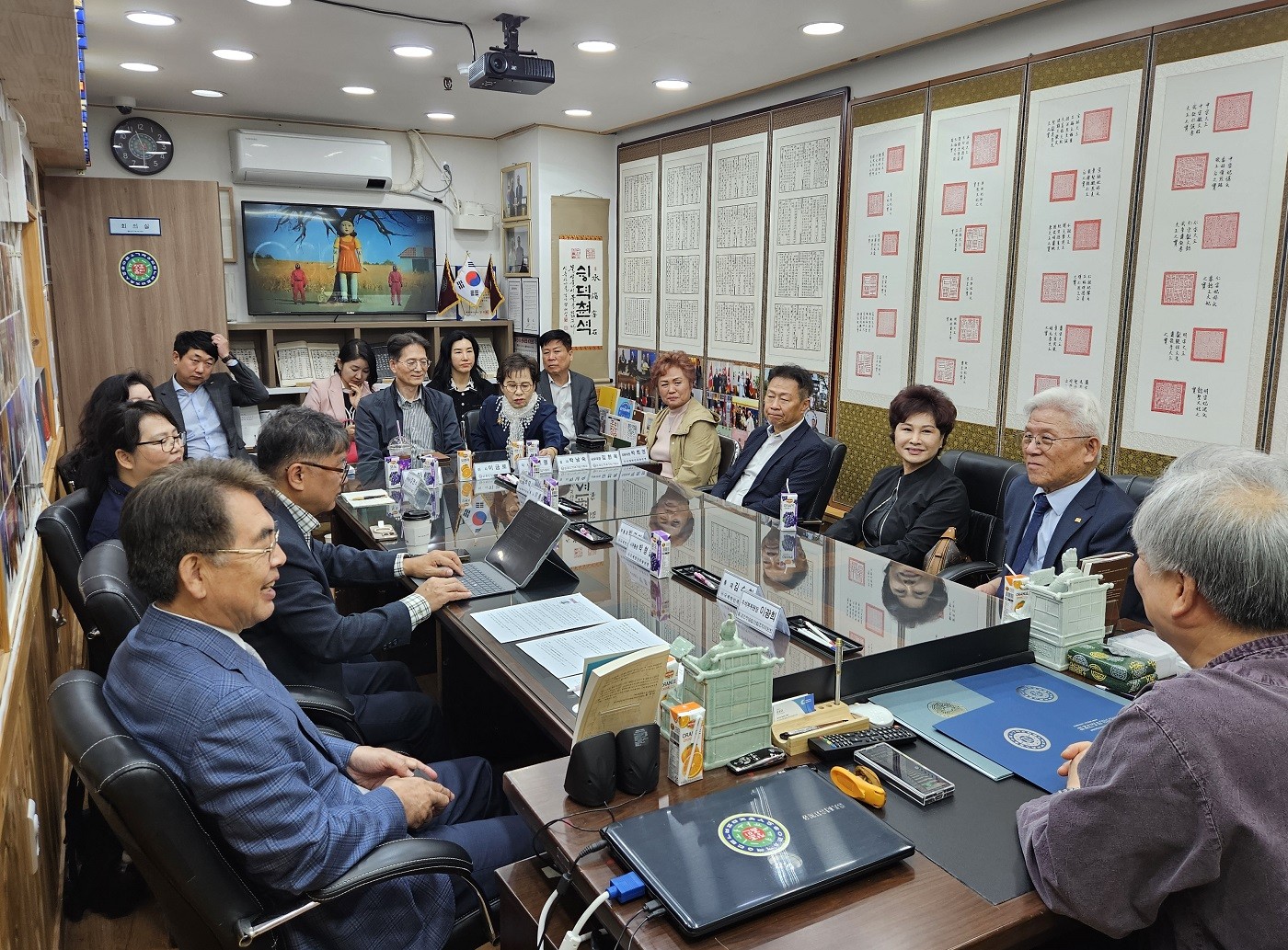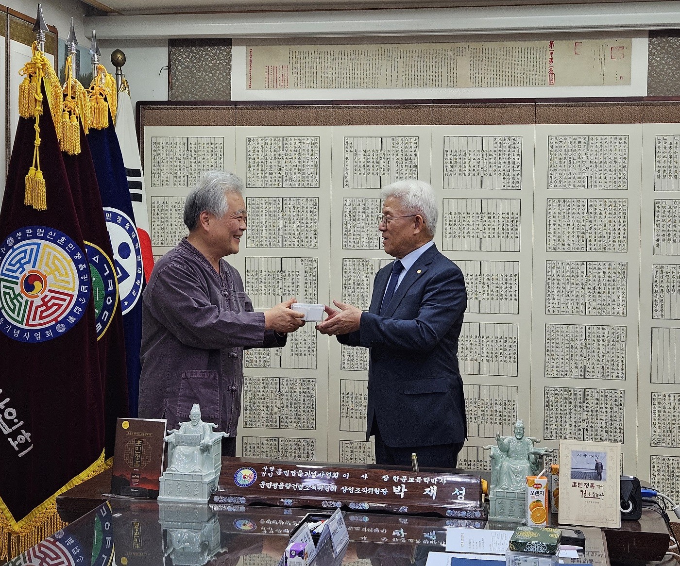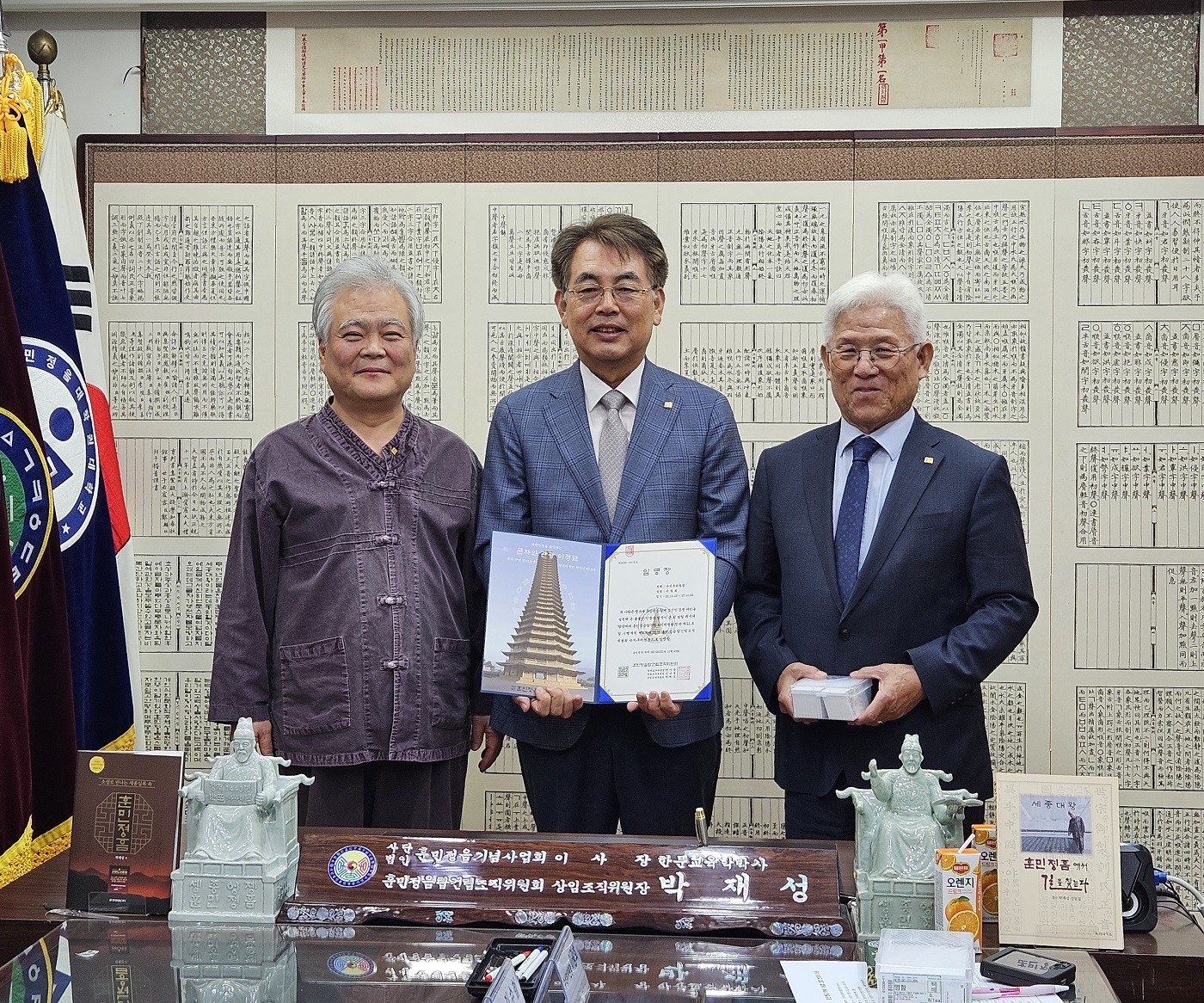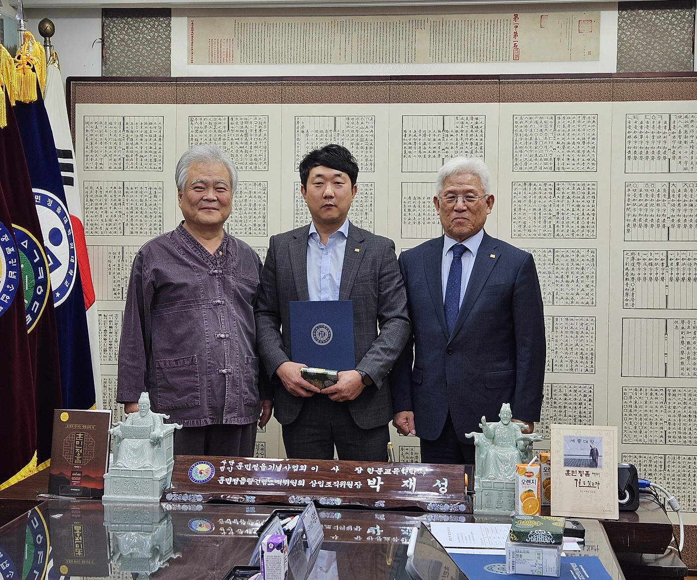 2025년 10월 23일(수) 오전 11시, 국제한민족총연맹(총재 김수철, 이하 ‘한민총’) 김수철 총재와 임원단이 사단법인 훈민정음기념사업회(이사장 박재성, 이하 ‘훈정회’)를 방문하였다.