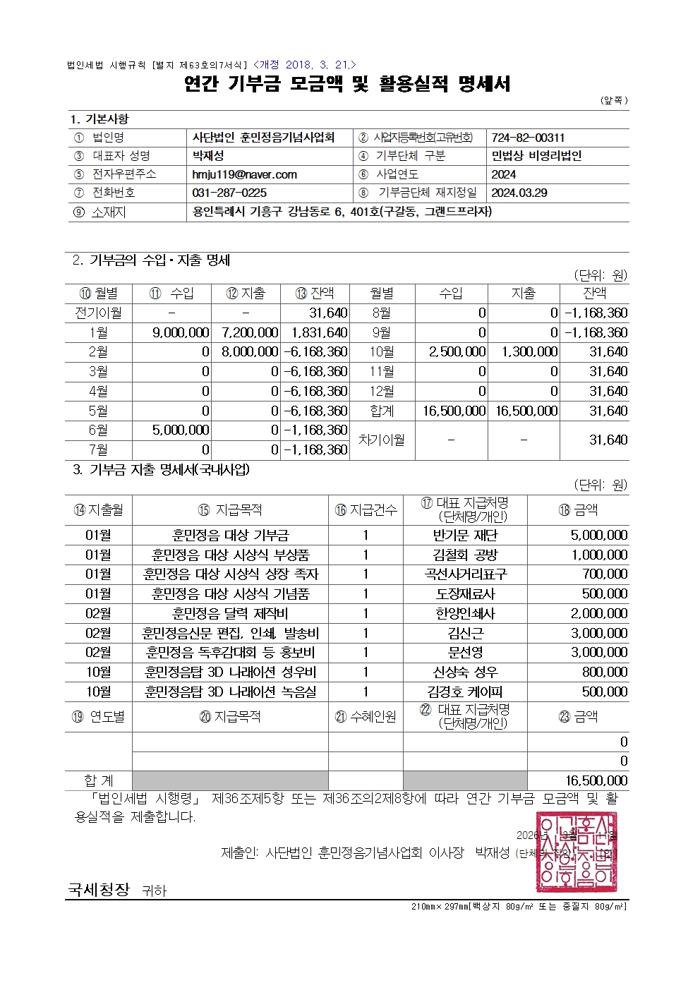 2024년 연간 기부금 모금액 및 활용실적 공개