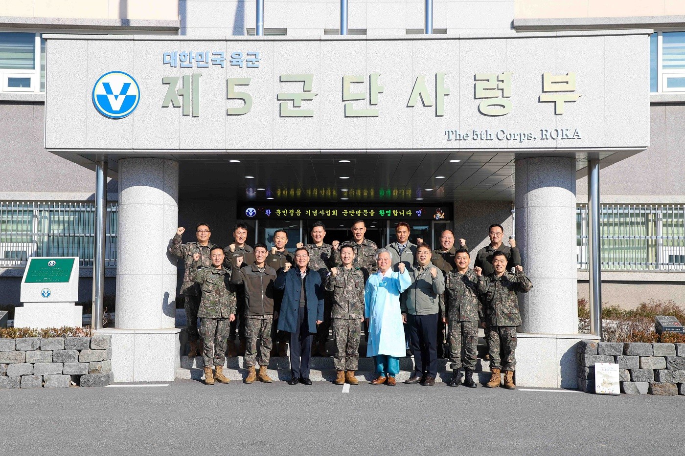 2023년 11월 13일, 사단법인 훈민정음기념사업회 박재성 이사장은 경기도 포천 소재 제5군단 군단장 김성민 중장의 초청으로 부대를 방문하였습니다. 이날 김성민 군단장은 국가안보 및 군 발전에 기여한 공로를 인정하여 박재성 이사장에게 감사패를 수여하였으며, 박재성 이사장은 부대 구호 “사맛디–소통하다”를 직접 휘호한 서예 작품을 증정하였습니다.