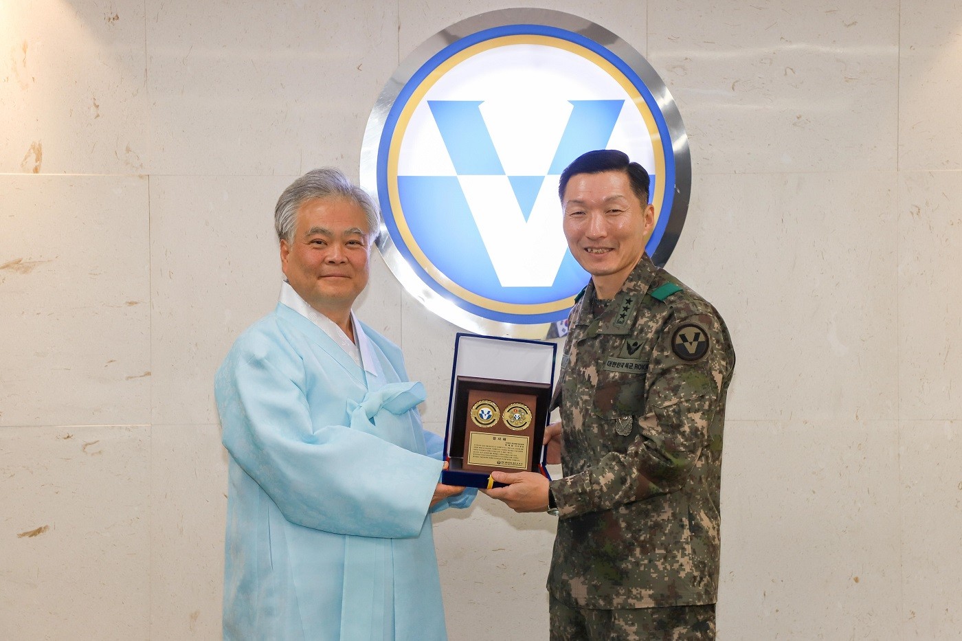 5군단장 김성민 중장에게 감사패를 받은 박재성 이사장