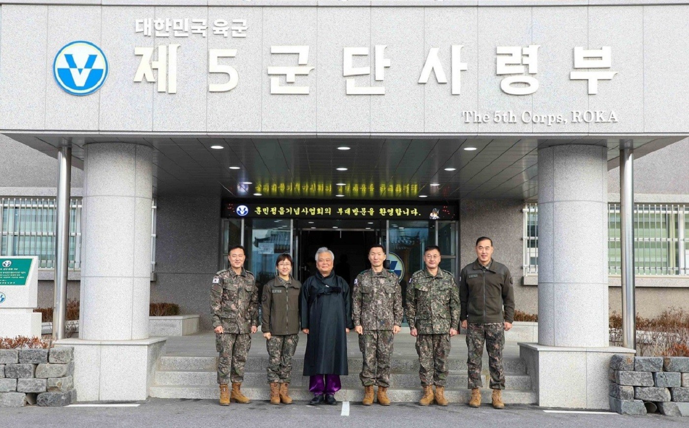 2023년 12월 19일, 사단법인 훈민정음기념사업회 박재성 이사장은 경기도 포천 소재 제5군단 군단장 김성민 중장의 초청으로 부대를 방문하였습니다. 이날 영관급 이상 지휘관 및 관계자들을 대상으로 「훈민정음의 오해와 진실」을 주제로 90분간 특강을 진행하였으며, 직접 휘호한 서예 작품을 김성민 군단장에게 기념으로 증정하였습니다.
