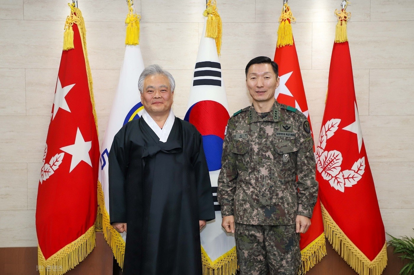 5군단장 김성민 중장과 기념촬영하는 박재성 이사장