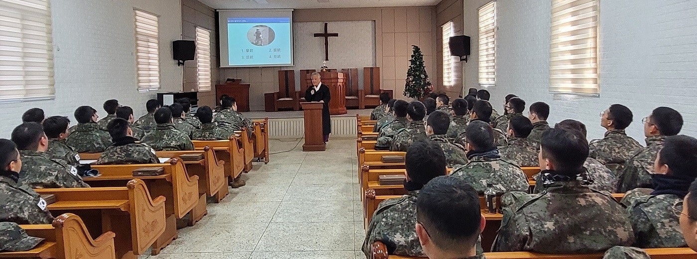 170여단 3대대 장병 180여명 대상으로 <훈민정음의 오해와 진실>에 대해서 특강하는 박재성 이사장
