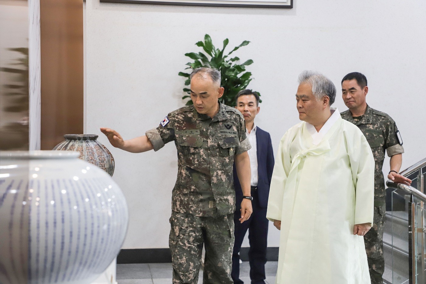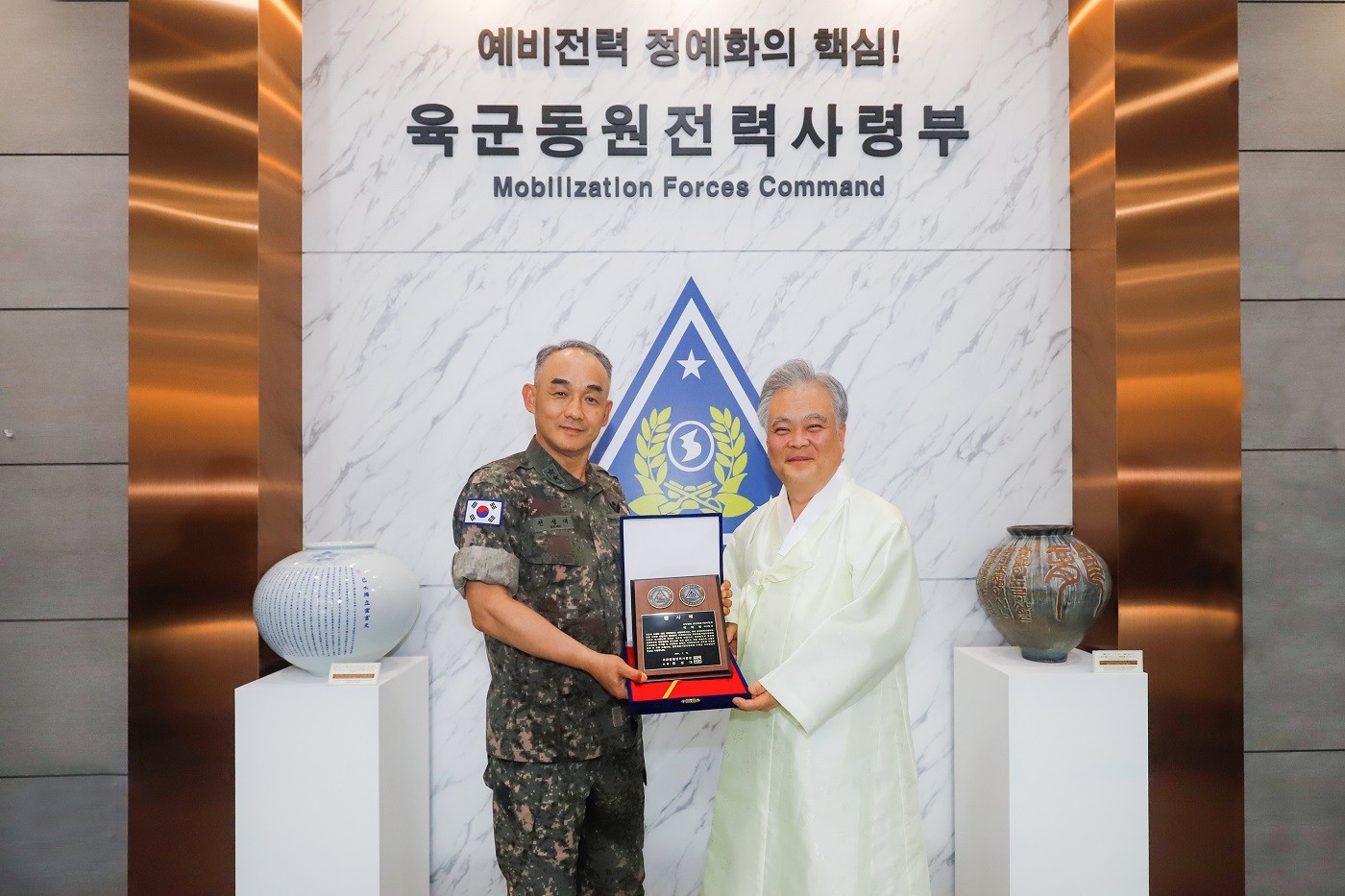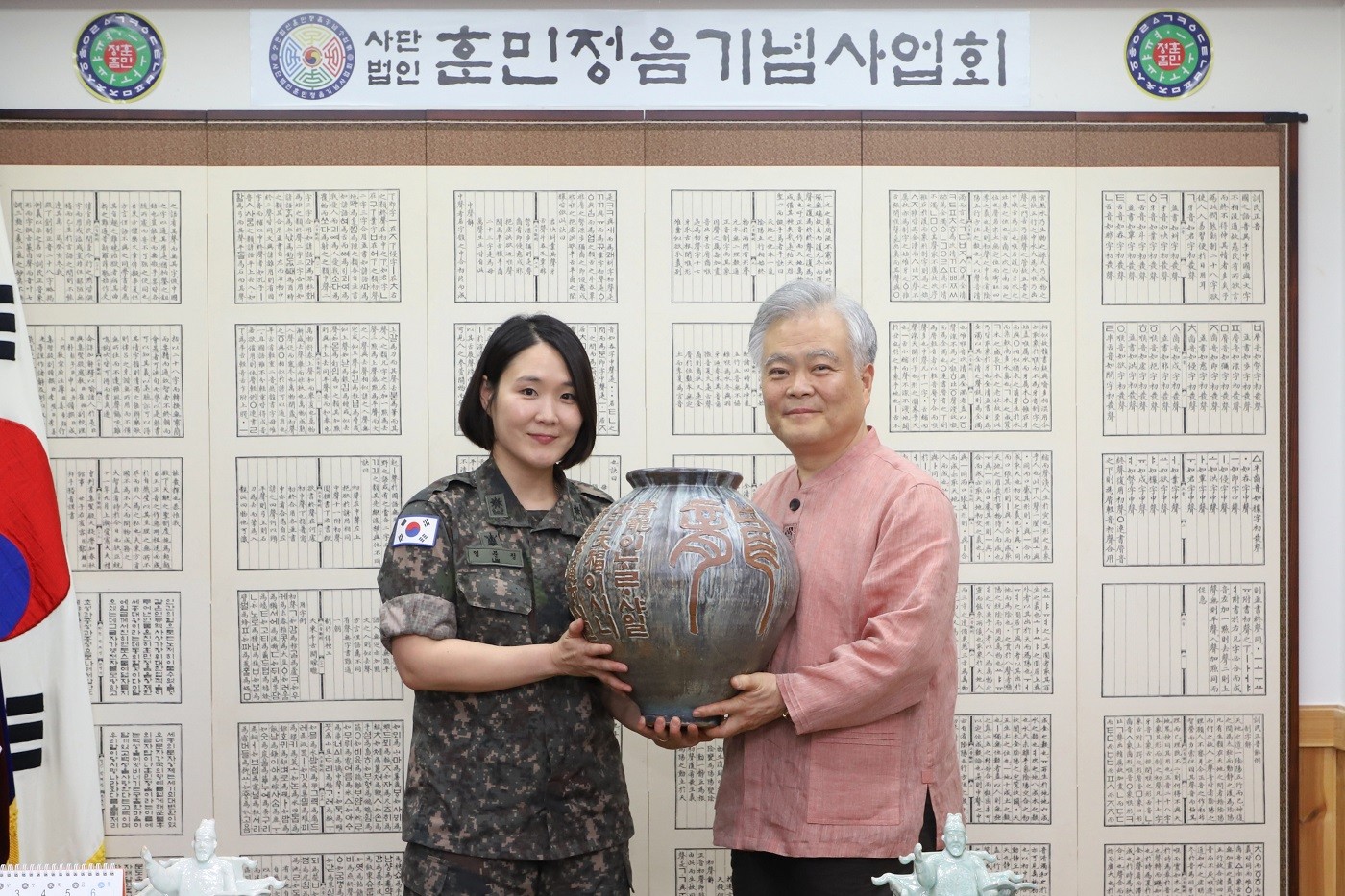도자기를 수령하기 위해 훈정회를 방문한 동원전력사령부 의전실장 임문정 소령과 기념 촬영