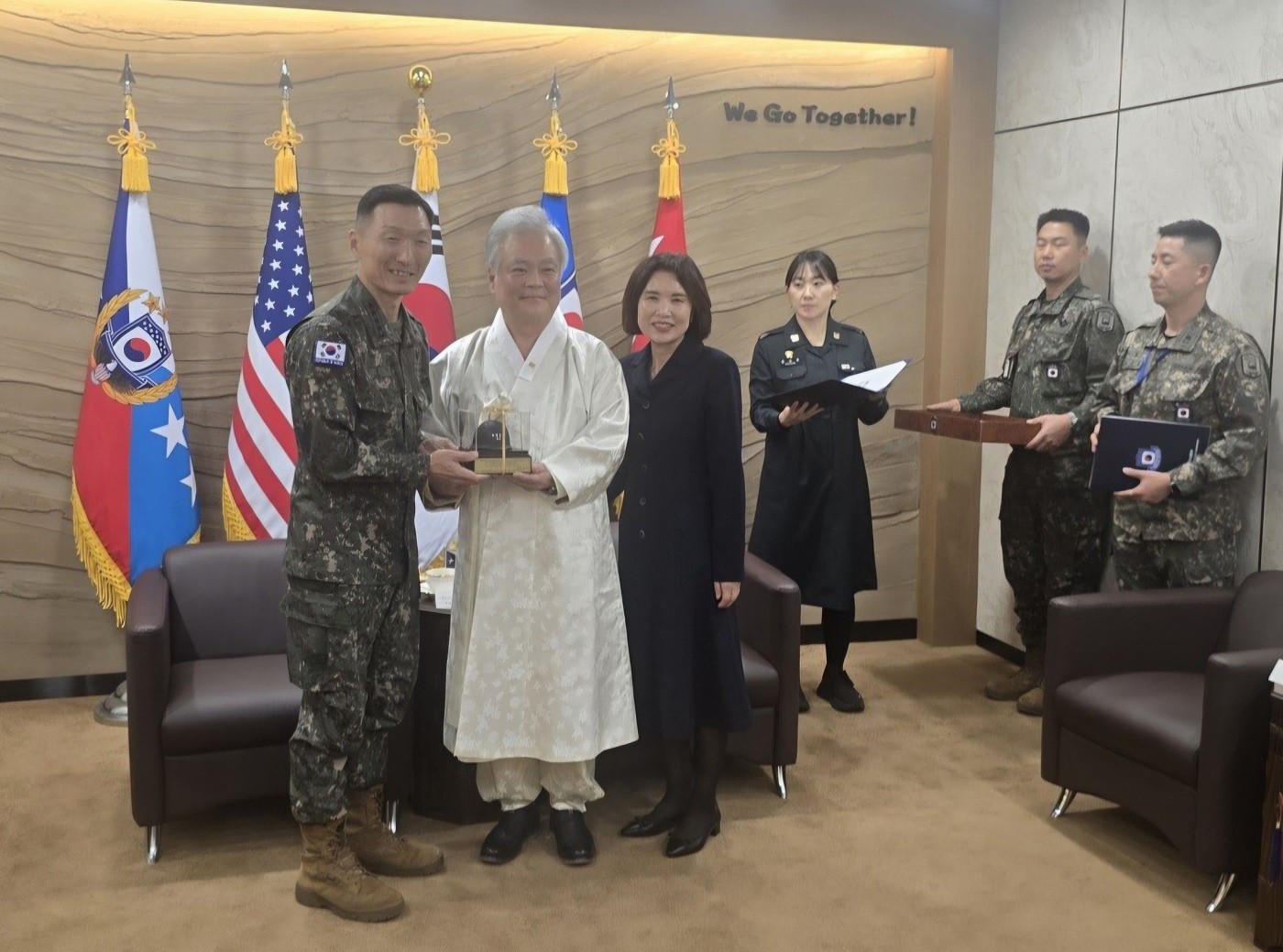김성민 부사령관은 “훈민정음의 창제 정신과 인류 문화유산적 가치를 세계에 드높이고, 바른 언어문화 확산과 미래 인재 양성에 헌신해 오신 이사장님의 노고에 깊은 경의를 표합니다. 훈민정음기념사업회의 무궁한 발전을 기원합니다.”라는 메시지와 함께 감사패를 전달하였습니다.