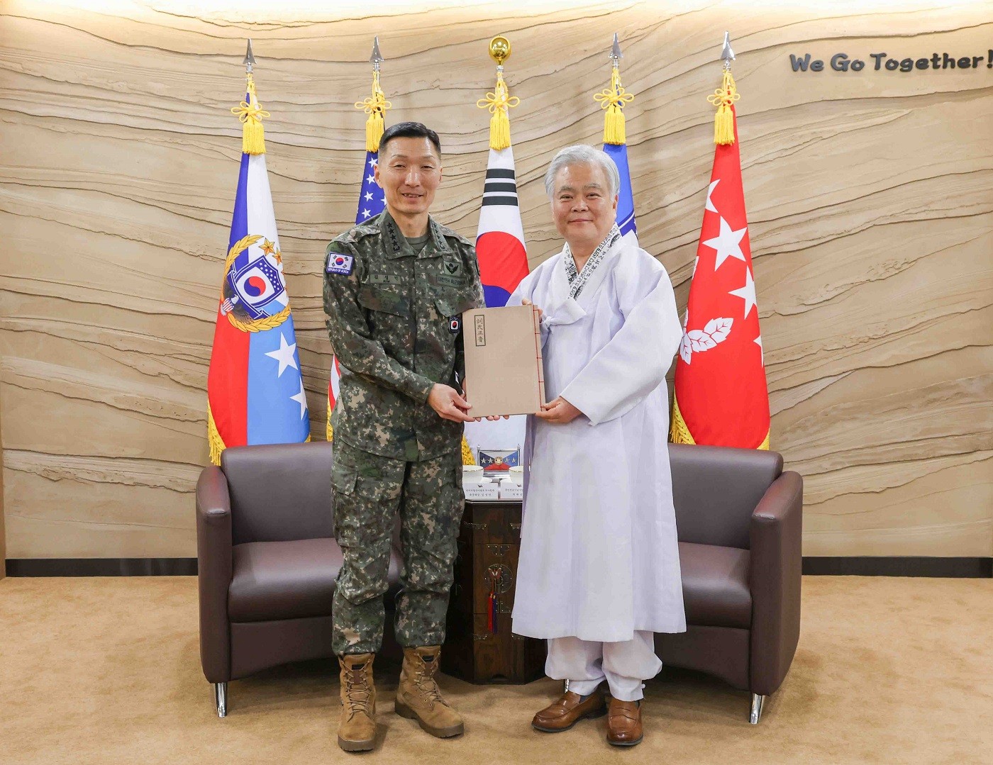 이날 방문에서 박재성 이사장은 김성민 부사령관에게 『훈민정음 해례본』 세트와 『해례본·언해본』 병풍을 증정하였으며, 이에 김성민 대장은 한미연합사령부 방문 기념패와 부대 코인을 답례로 전달하였습니다.