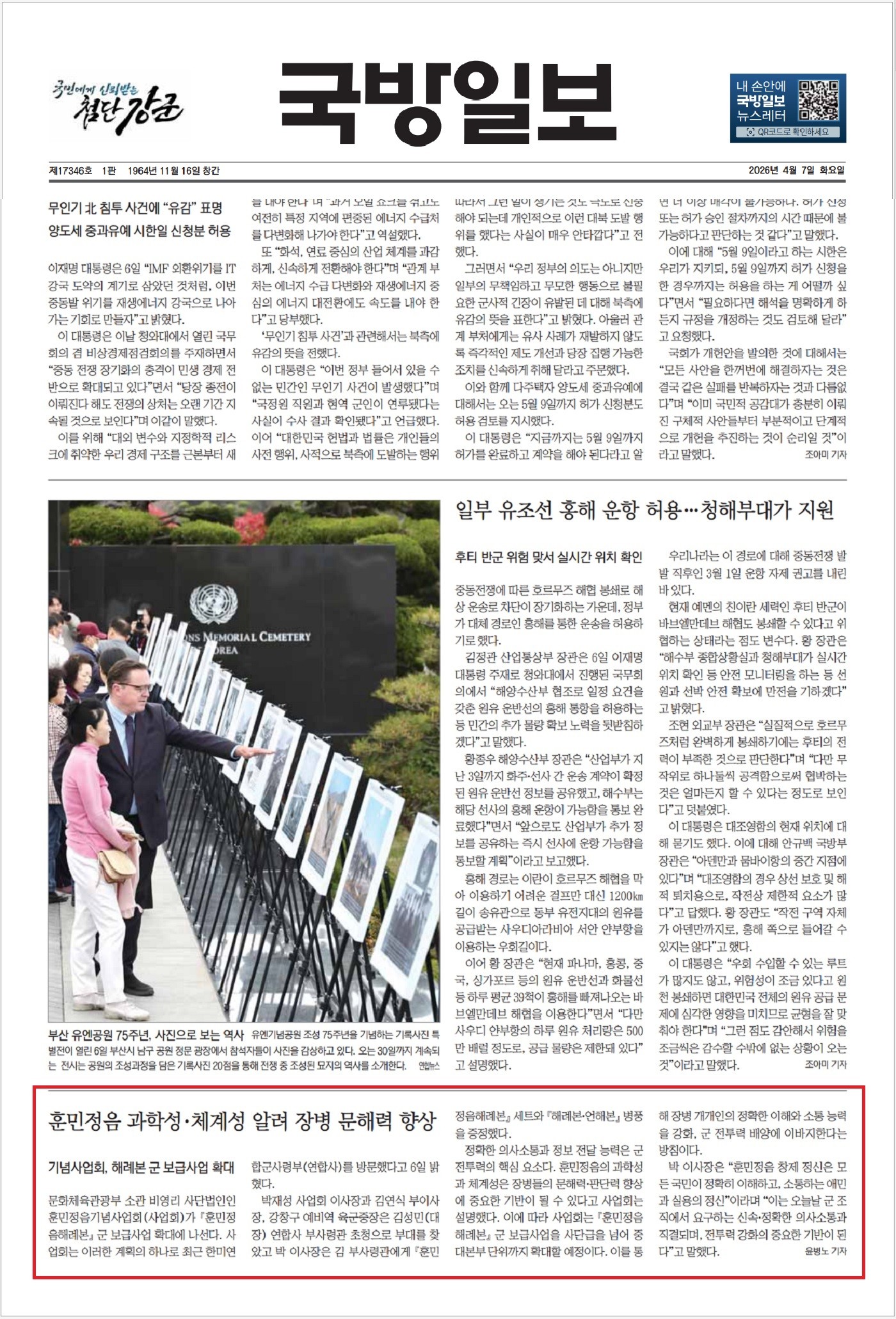 <국방일보> 지면 및 인터넷 신문, 해례본 군 보급 사업 보도