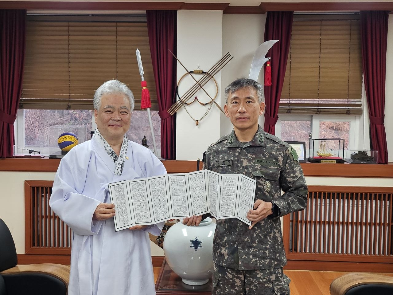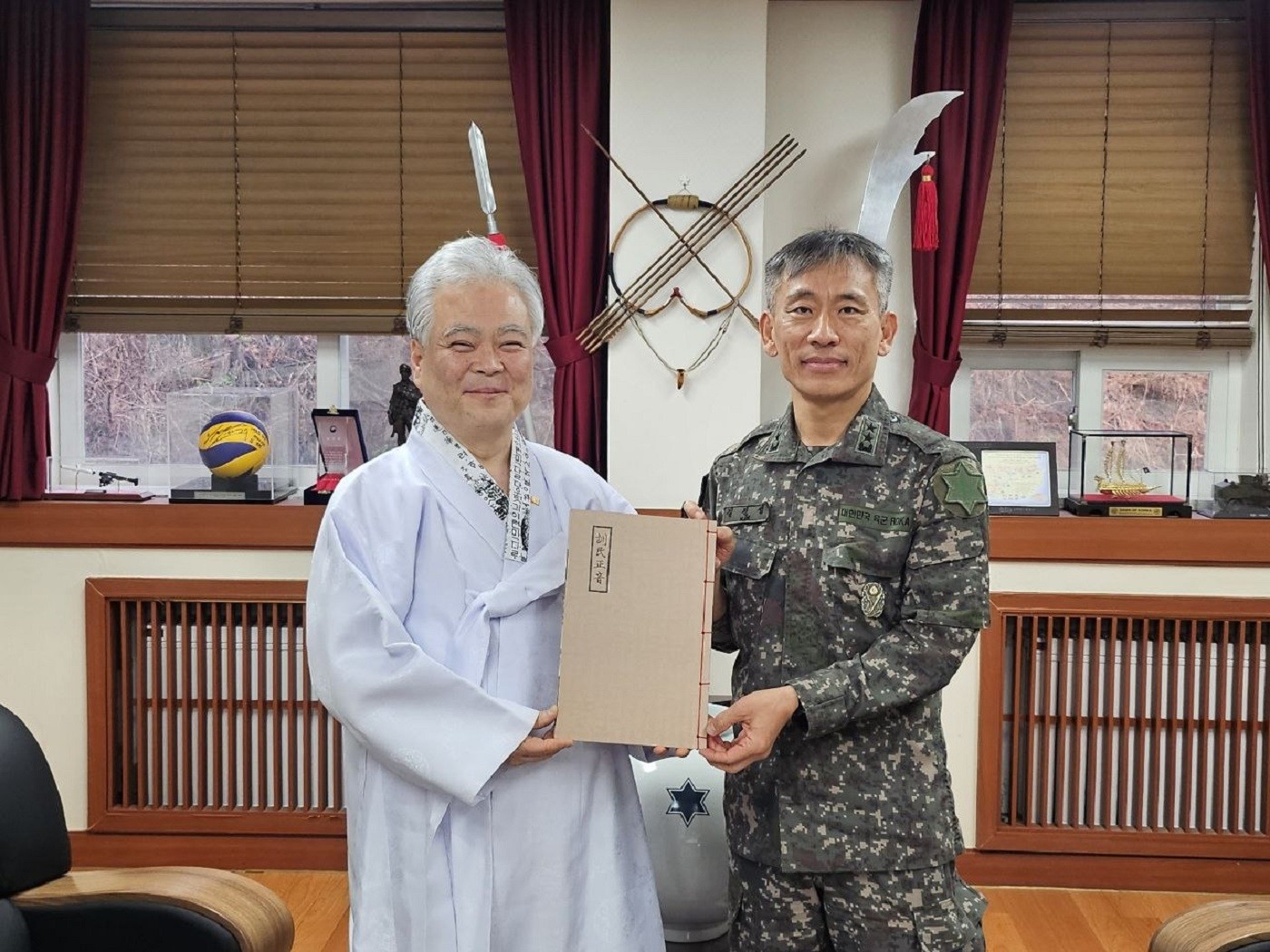 강연에 앞서 『훈민정음 해례본』과 병풍을 증정했으며, 김진성 사단장은 이를 부대 도서관에 비치해 전 장병이 열람할 수 있도록 하겠다고 밝혔습니다.